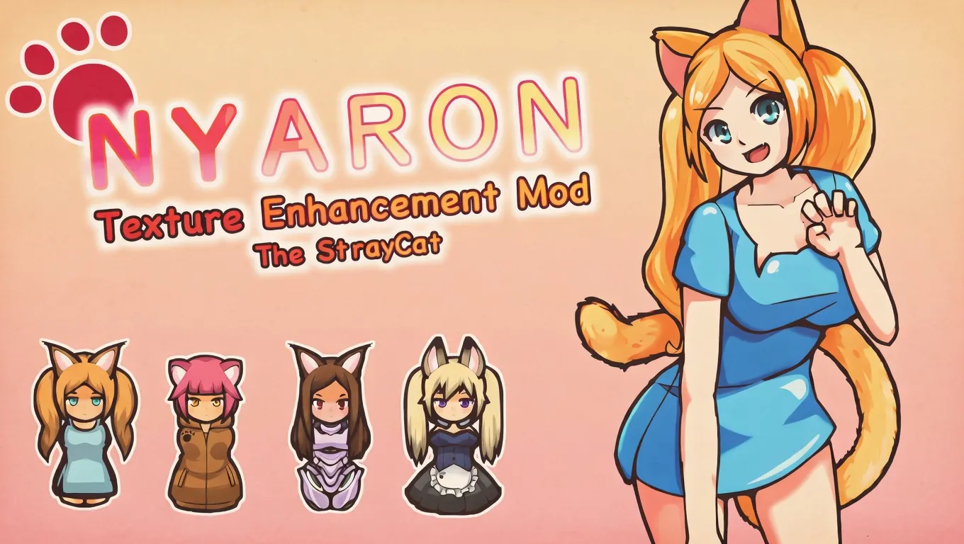 This mod enhances all Nyaron-related textures with crisp, detailed 512x512 artwork while perfectly preserving the original cute catgirl aesthetic and color scheme.