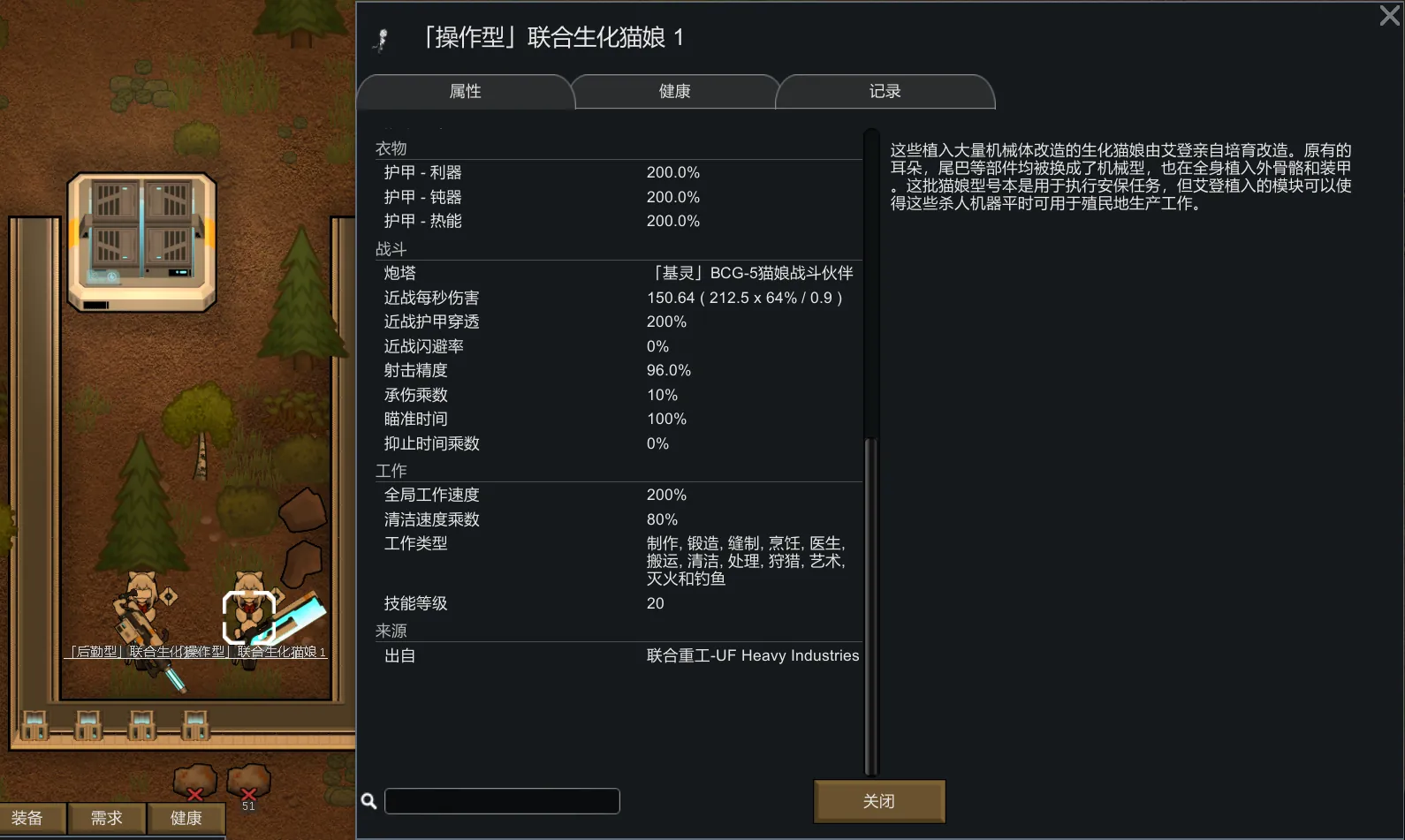 更改了联合系列的一些设置,满足强迫症需求 重工: 纳米维修站大小改为1*1,并可以放在建筑上 锉凿布三种材料防御系数改为与沐烬钢一致 操作与后勤型猫娘增添更多工作类型,等级改为20级,如果添加老农派系则可选择老农猫娘武器 康德型喷气背包可制作 如果添加AutoBlink,虚空行者芯片则可进行自动折跃(40tick80格) 轻工: 射击墙掩体效果改至0.98 老农: 老农空投炮塔可建造 空袭指示器可制作