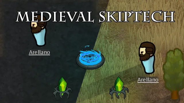 It functions the same way as MigCorp's skip doors, meaning that if unpowered it'll need to charge up (albeit slower than the MigCorp variant) and will cause skip shock to pawns using it. Since this is for a medieval setting, there's also a new refuellable "portal crystal" building that you can build to power it. Enemies will ignore both of these, and will be able to use the portal if you allow it in MigCorp - Skiptech's mod settings.
