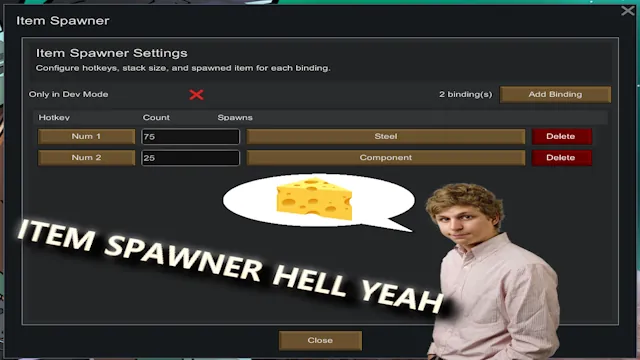 - Choose any item to spawn from an in-game picker (Mods Supported.)