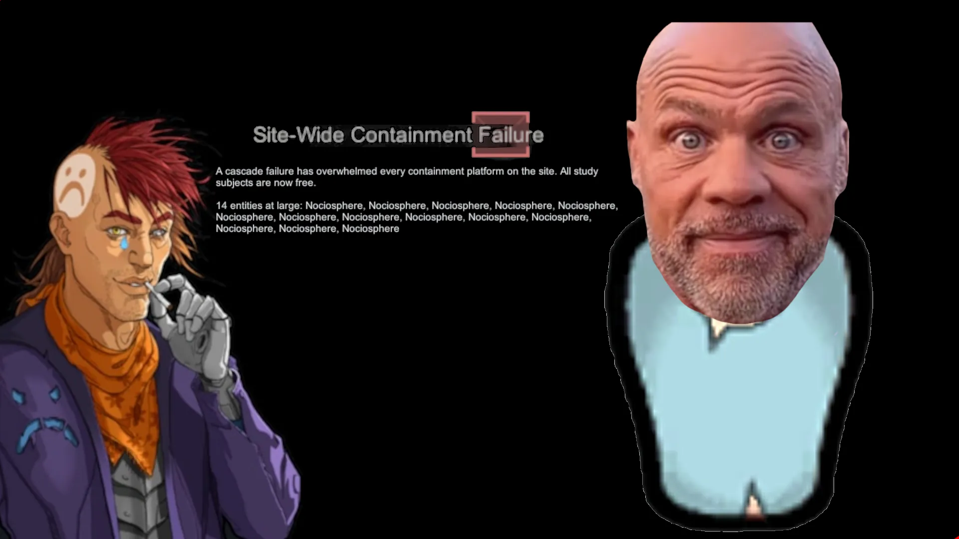 A cascade failure is when through unknown means - likely sabotage, almost every security system across the facility fails only for but a moment. However a moment is all the entities need to free themselves from their binds. Best hope you have a team ready to respond. Good luck.