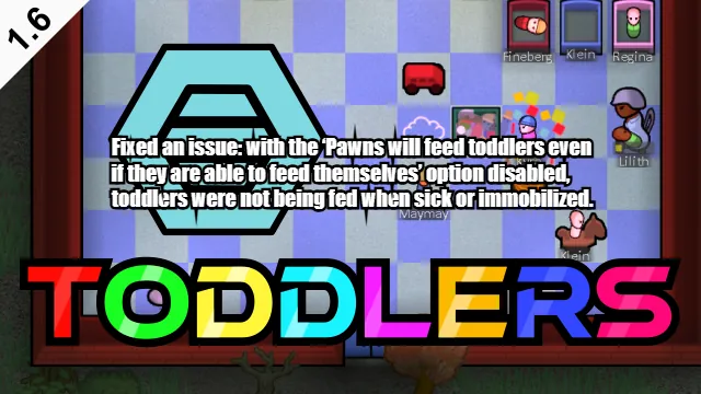 Fixed an issue: with the ‘Pawns will feed toddlers even if they are able to feed themselves’ option disabled, toddlers were not being fed when sick or immobilized.