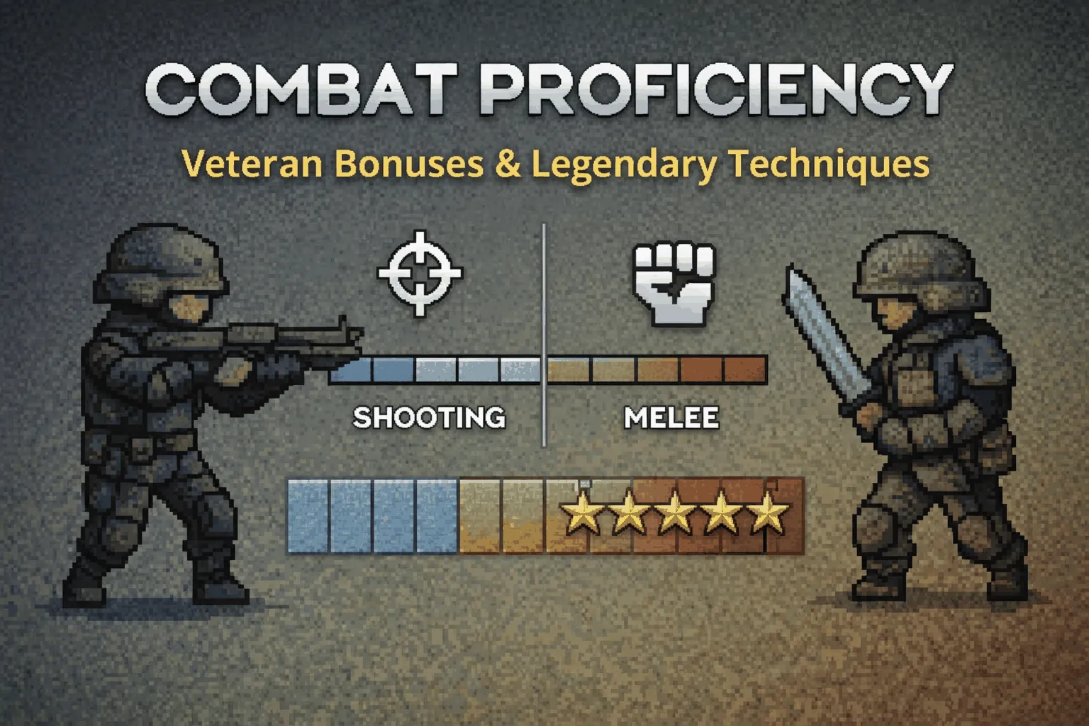 Adds two informational health tab entries: Shooting Proficiency and Melee Proficiency