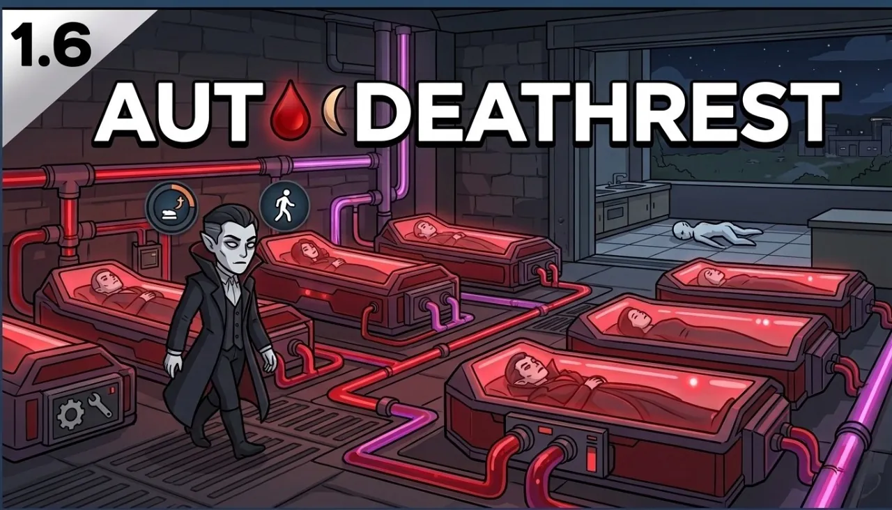 [b]Auto Deathrest[/b] makes any pawn with the [b]Deathrest need[/b] automatically walk to their assigned casket when the need drops below a threshold [b]you choose[/b]. No babysitting. No micromanagement. No dead vampires on your kitchen floor.