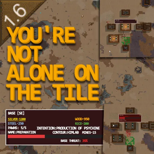 Four hostile factions have settled at the edges of your tile — and they're not here to negotiate. They build bases, grow crops, research technology, brew drugs, and save up silver to buy raids on your colony. Every day you survive, they grow stronger.