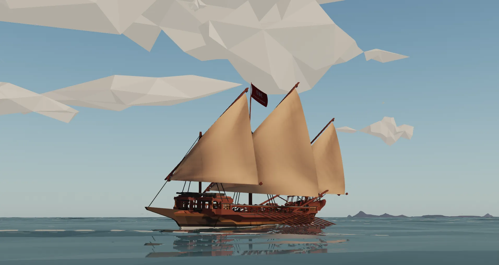 Sails are controlled via up/down and left/right controls from the helm. The ship is made to be used on low physics at 40% wind, or faster at higher physics settings.
