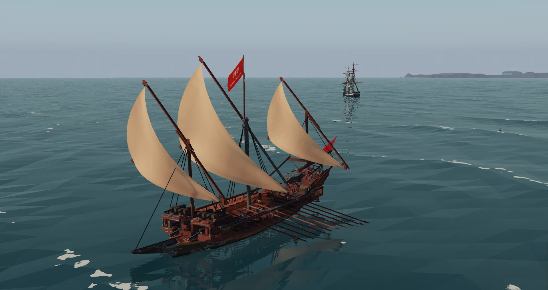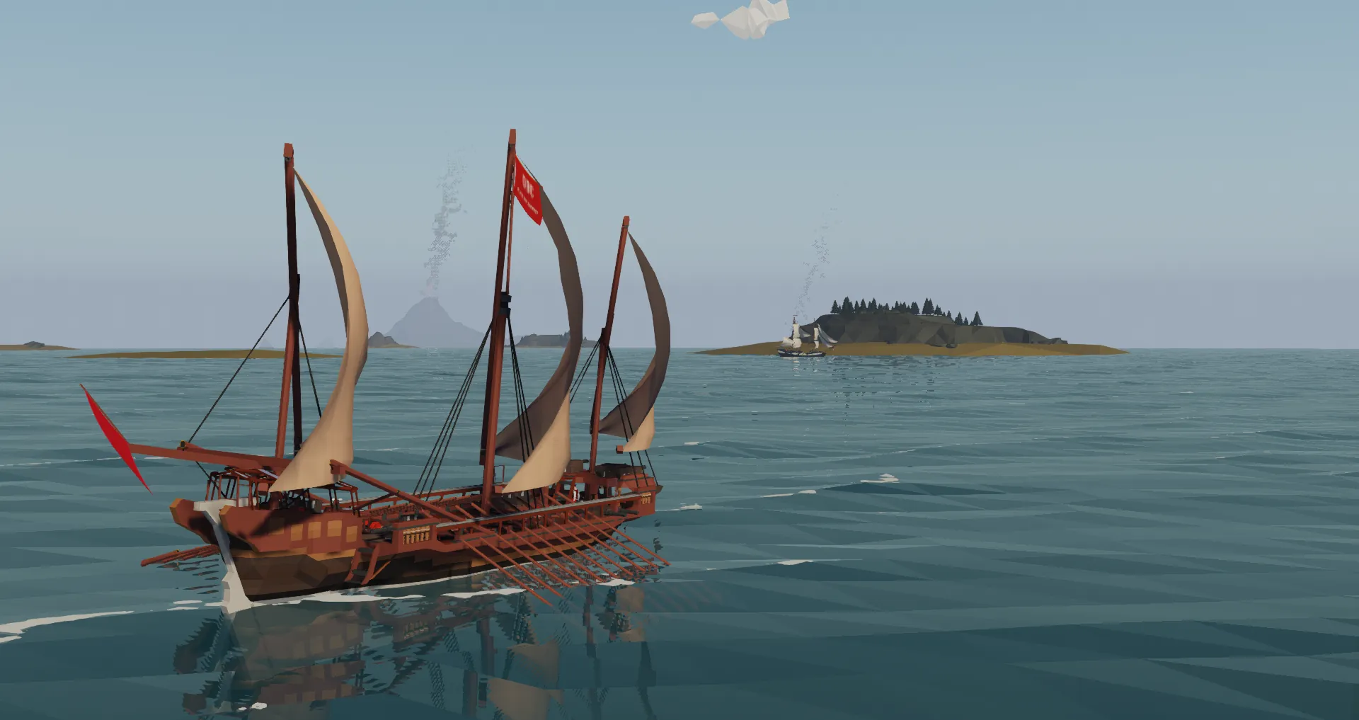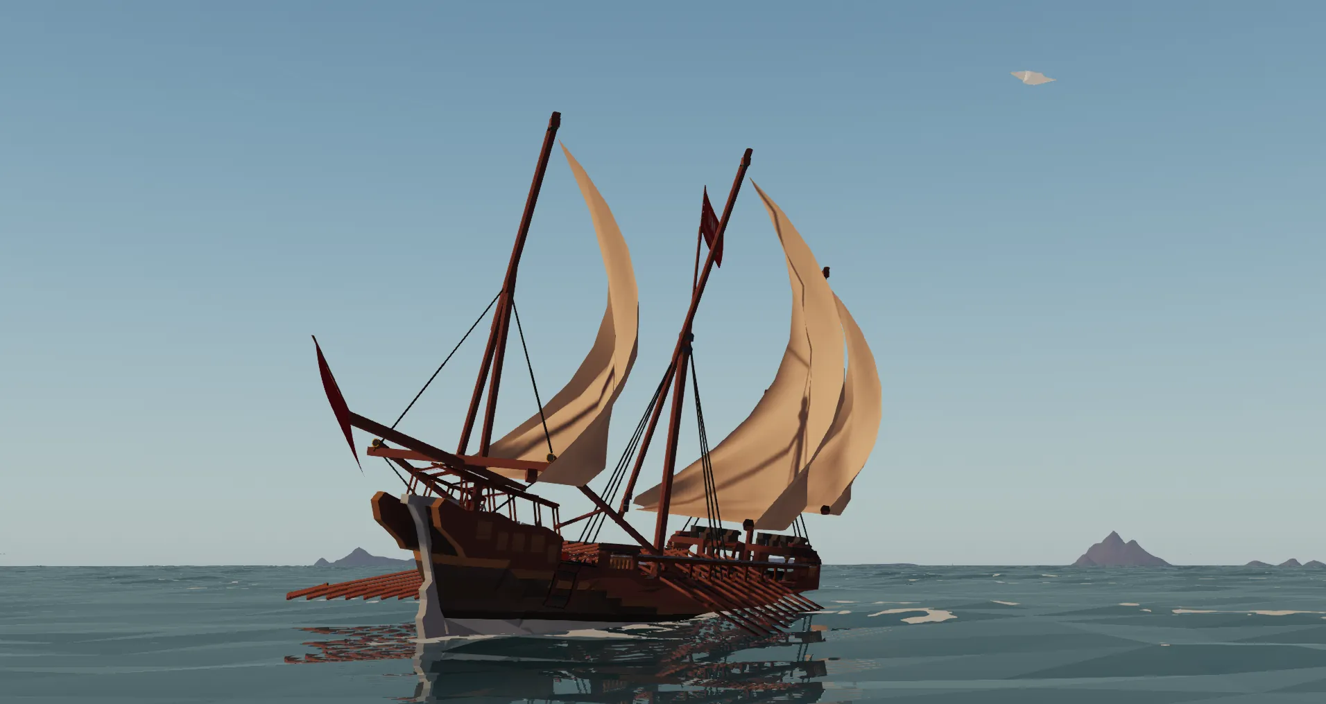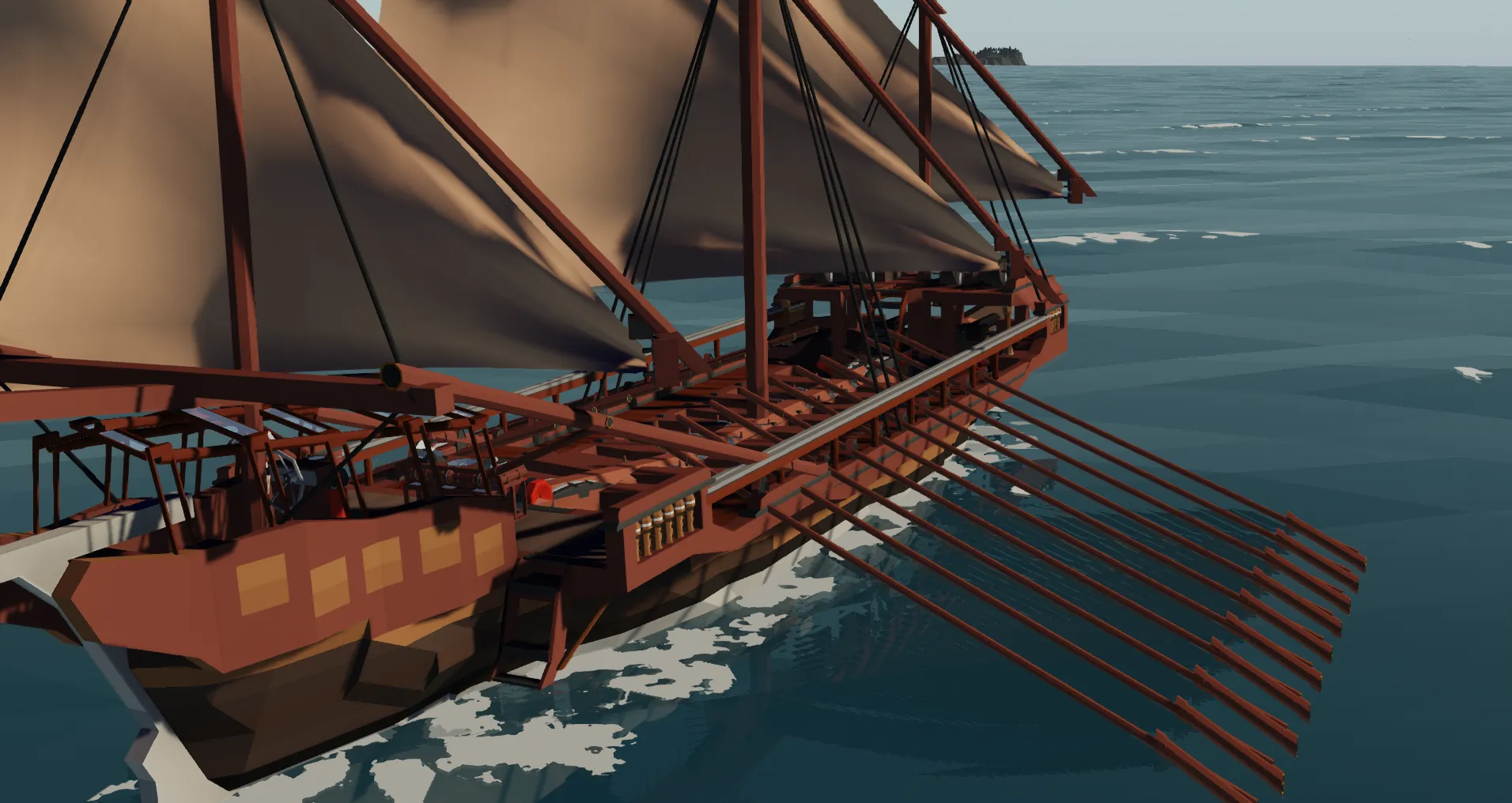 -For this same reason, there are no moving ropes and all sails are controlled by pivots, and also why the oars don't actually move