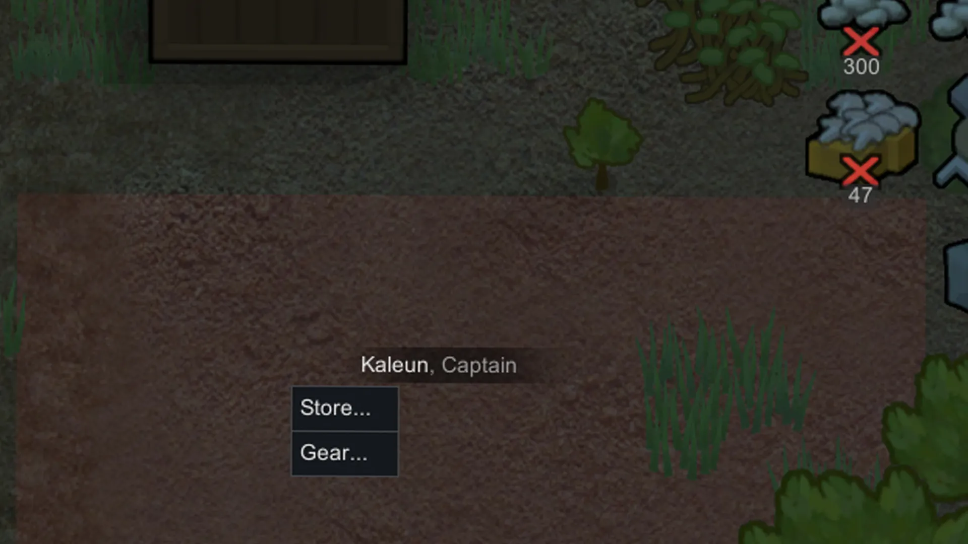 Two icon buttons appear for each item in the pawn's inventory ("Gear" tab):
