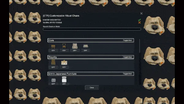 [*] [b]GLOBAL STATE TOGGLE: [/b]Want every chair to instantly become a ritual seat? Flip this switch once to batch-enable or batch-disable all discovered chairs.