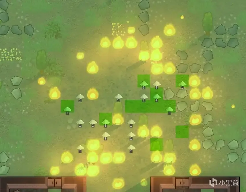 在长了完全成熟的草和灌木以及生长期超过50%的树的地块上放火,烧死植物后会使当前地块变成黑土地,肥沃度在原来的基础上增加50%,并且掉落草木灰物品,草丛50%掉1个,灌木掉1个,树掉两个。草木灰可用于后续机制施肥使用。黑土地在玩家不干涉的情况下,10天恢复初始地块的地形。