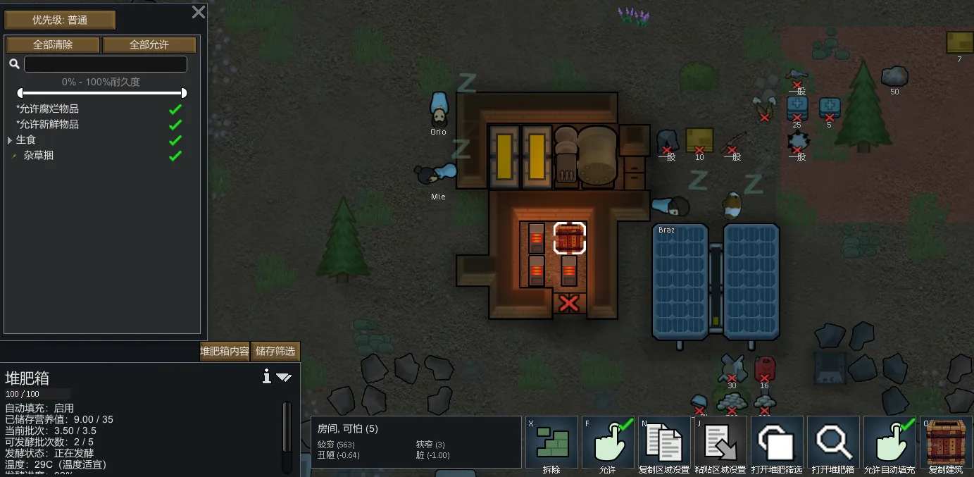 种植区添加了一个放火按钮,点了之后殖民者会点燃种植区内的任何植物,适合大规模烧荒使用,当然也容易烧到自己。