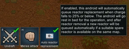 This is a small patch for [b]Vanilla Races Expanded - Android[/b] that adds automatic reactor replacement for android pawns through a convenient toggle in the pawn command bar.