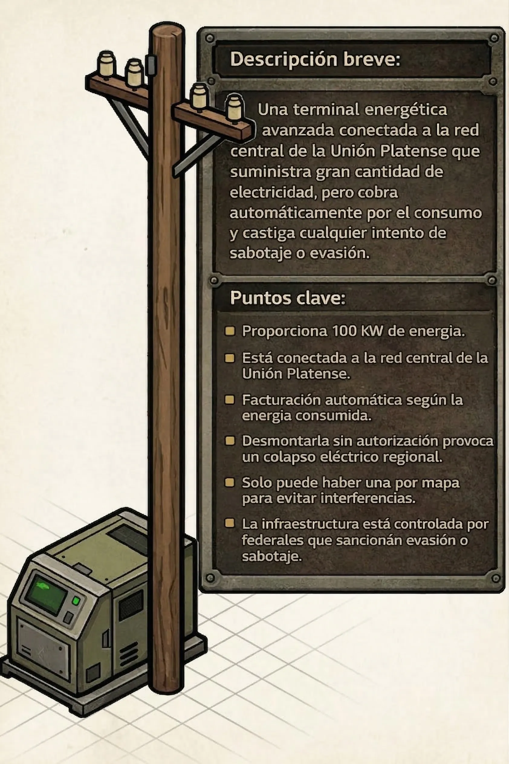 - Infraestructura Energética: Incluye el Poste de Energía Federal, una terminal de 100kW con sistema de facturación automática y protocolos de seguridad por sabotaje.