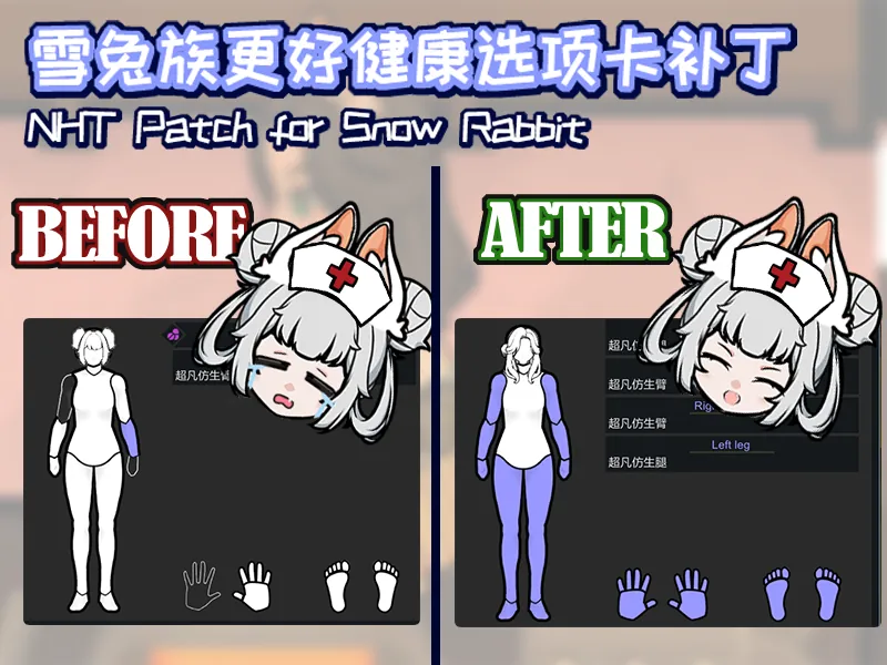 Adds Nice Health Tab patch for the SnowRabbit race. SnowRabbit mod:[url=https://steamcommunity.com/sharedfiles/filedetails/?id=3643594275]https://steamcommunity.com/sharedfiles/filedetails/?id=3643594275[/url]