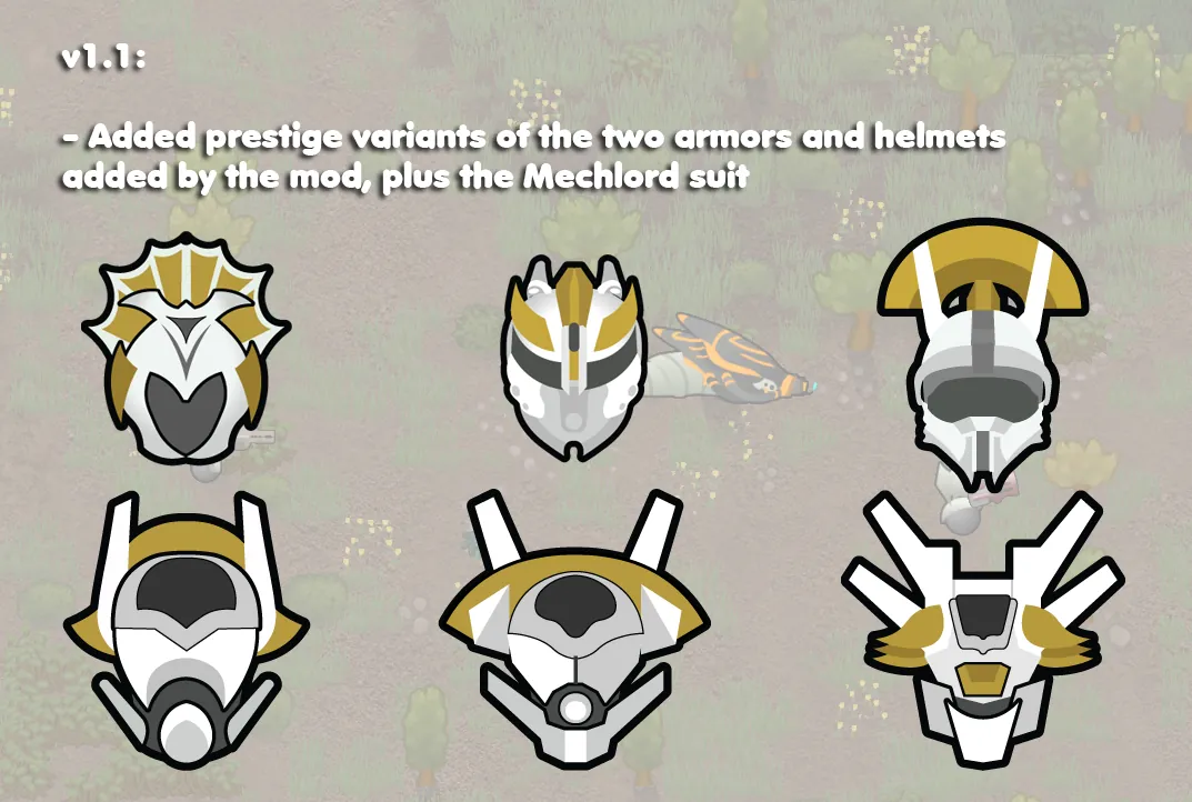 - 7 new mechanoids: The Aura, Daggersnout, Goliath, Phalanx, Siegebreaker, Fireworm and Demolisher make their return. The 7 mechs will appear in raids, clusters, etc, and they can be disabled separately through mod options.