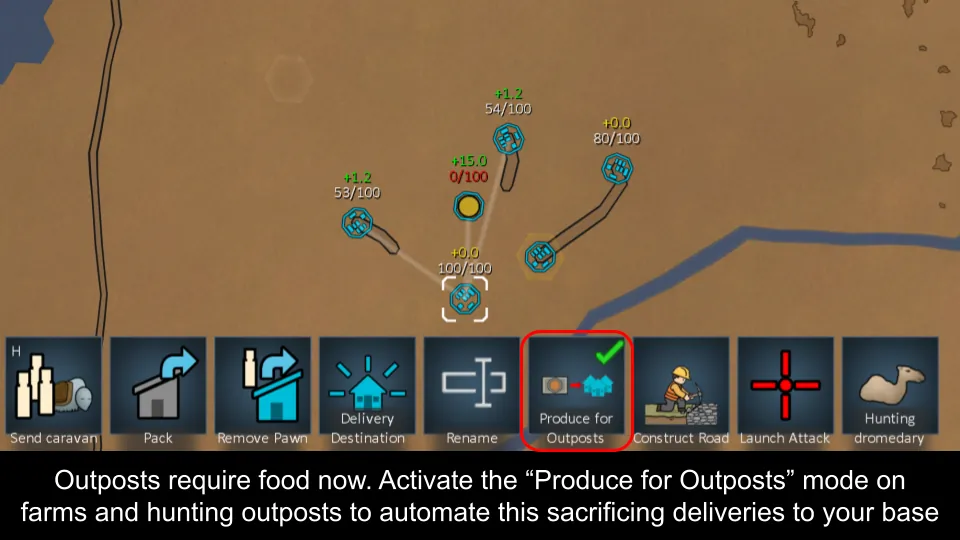 [*] [b]Outpost enhancements[/b]: Outposts require food now. They can build roads and they can also launch attack caravans at enemy settlements