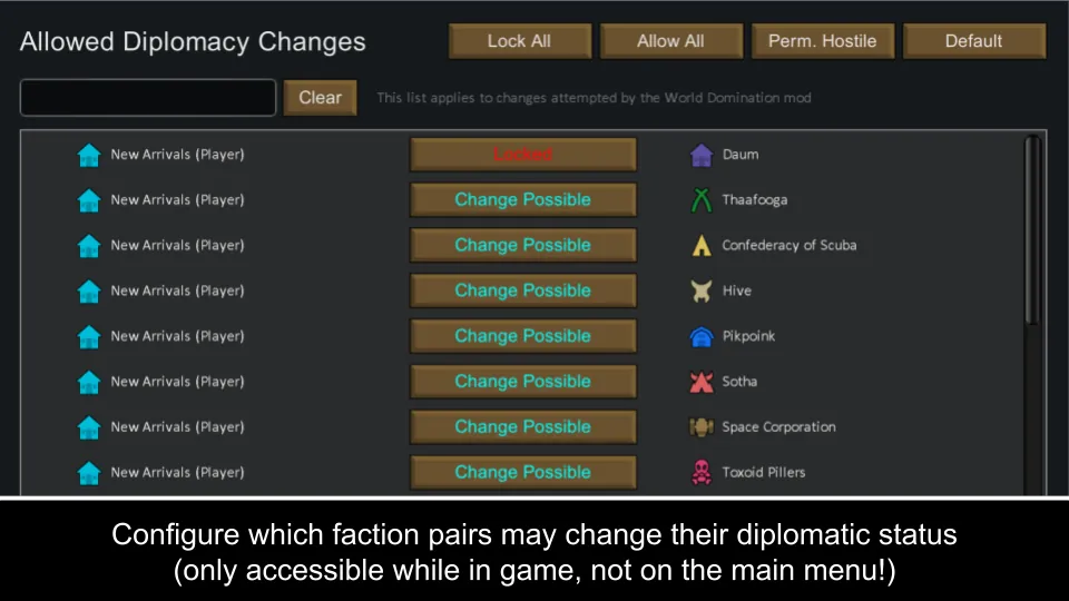 Use the [b] [url=https://steamcommunity.com/sharedfiles/filedetails/?id=3680501610]World Domination Experimental Branch[/url][/b] for the latest features. I had to rework lots of things which are causing save game incompatibility. Leaving this branch as is for that reason!