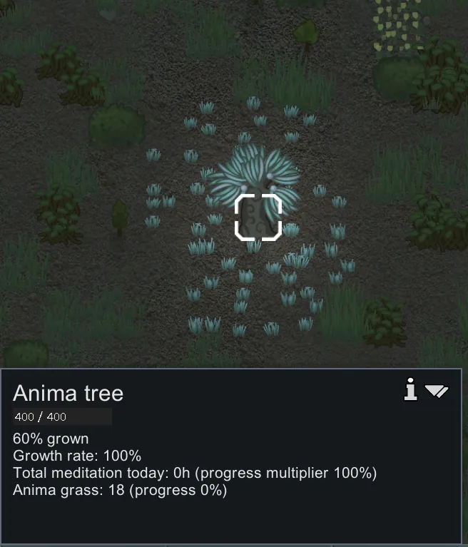 Anima Trees and Anima Grass are normally unable to grow below light level 51%, and Anima Grass will decay over time.