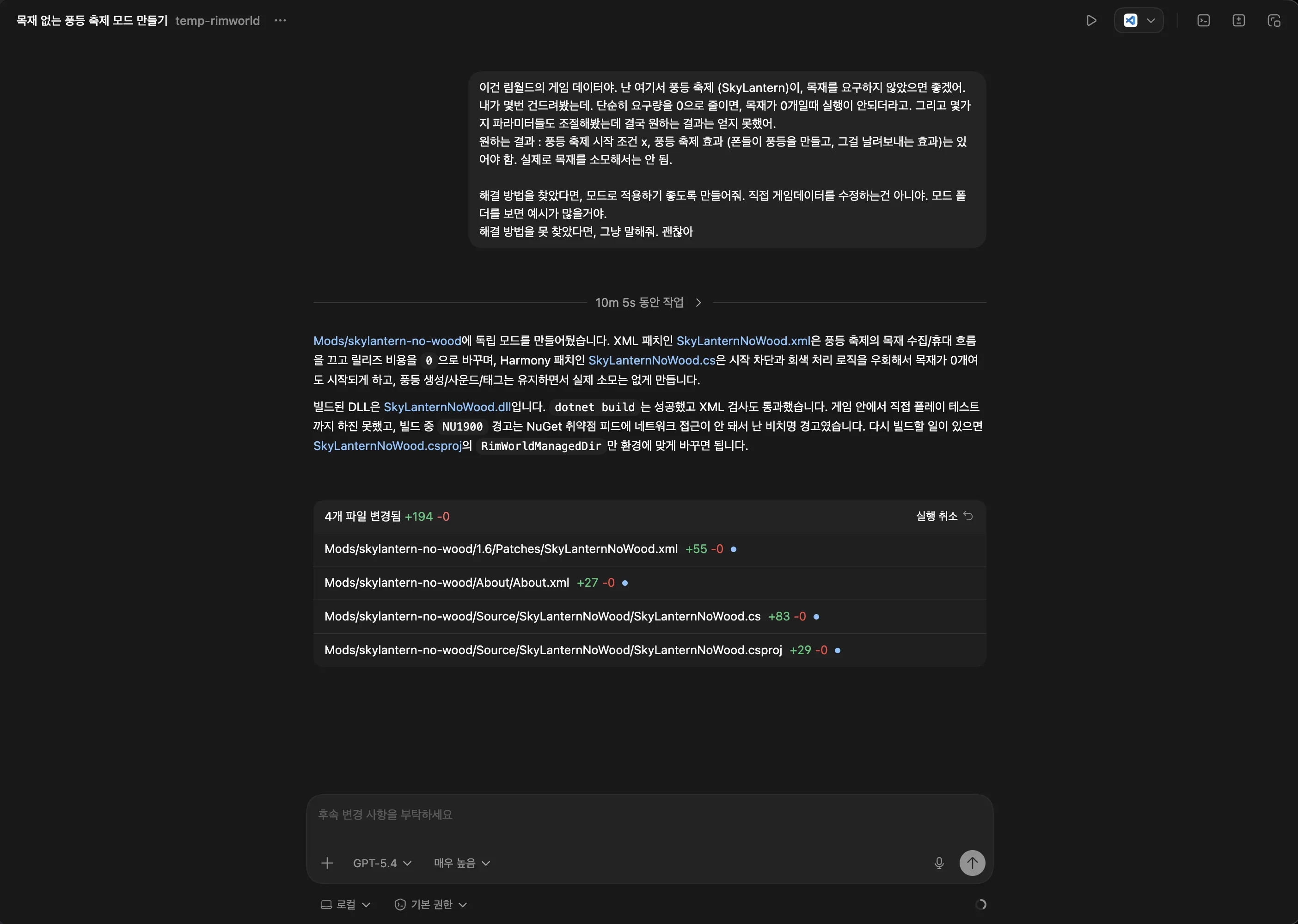 Makes the SkyLantern festival start without requiring any wood while keeping the lantern-making and release visuals. No wood is consumed.