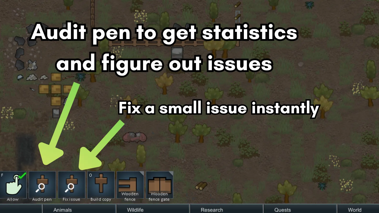 Pen Audit is a quality-of-life mod for diagnosing animal pens quickly and clearly.