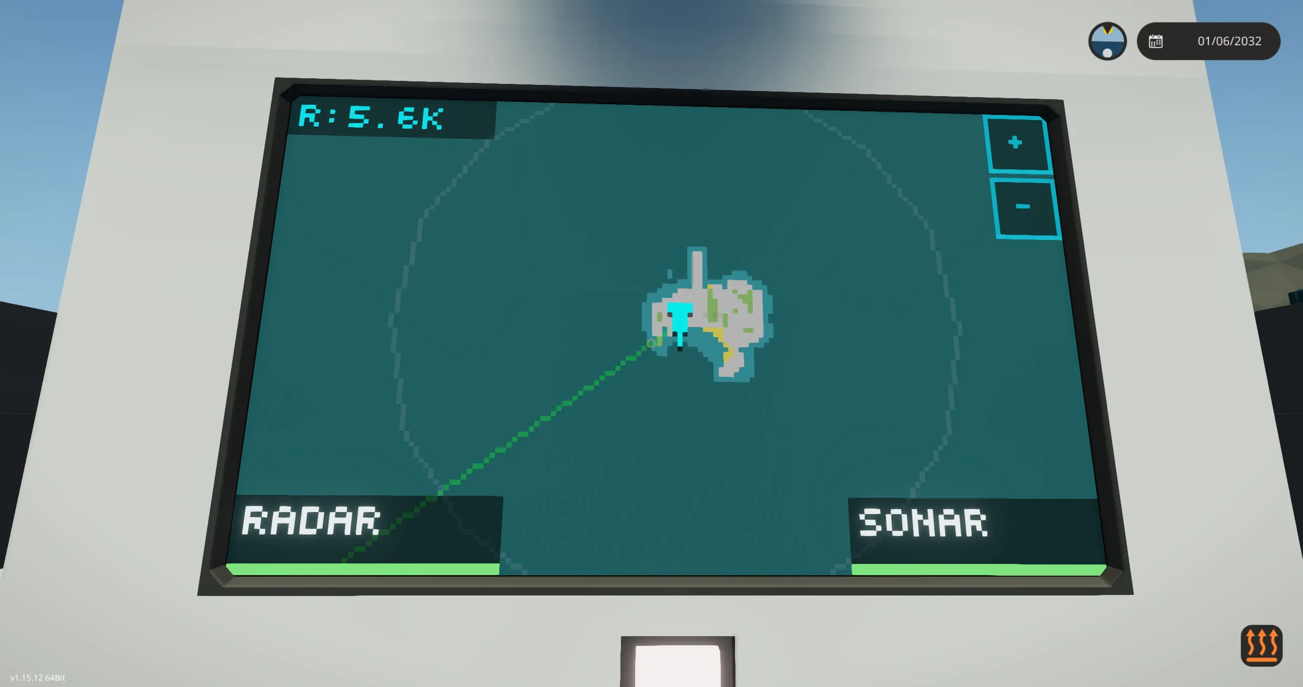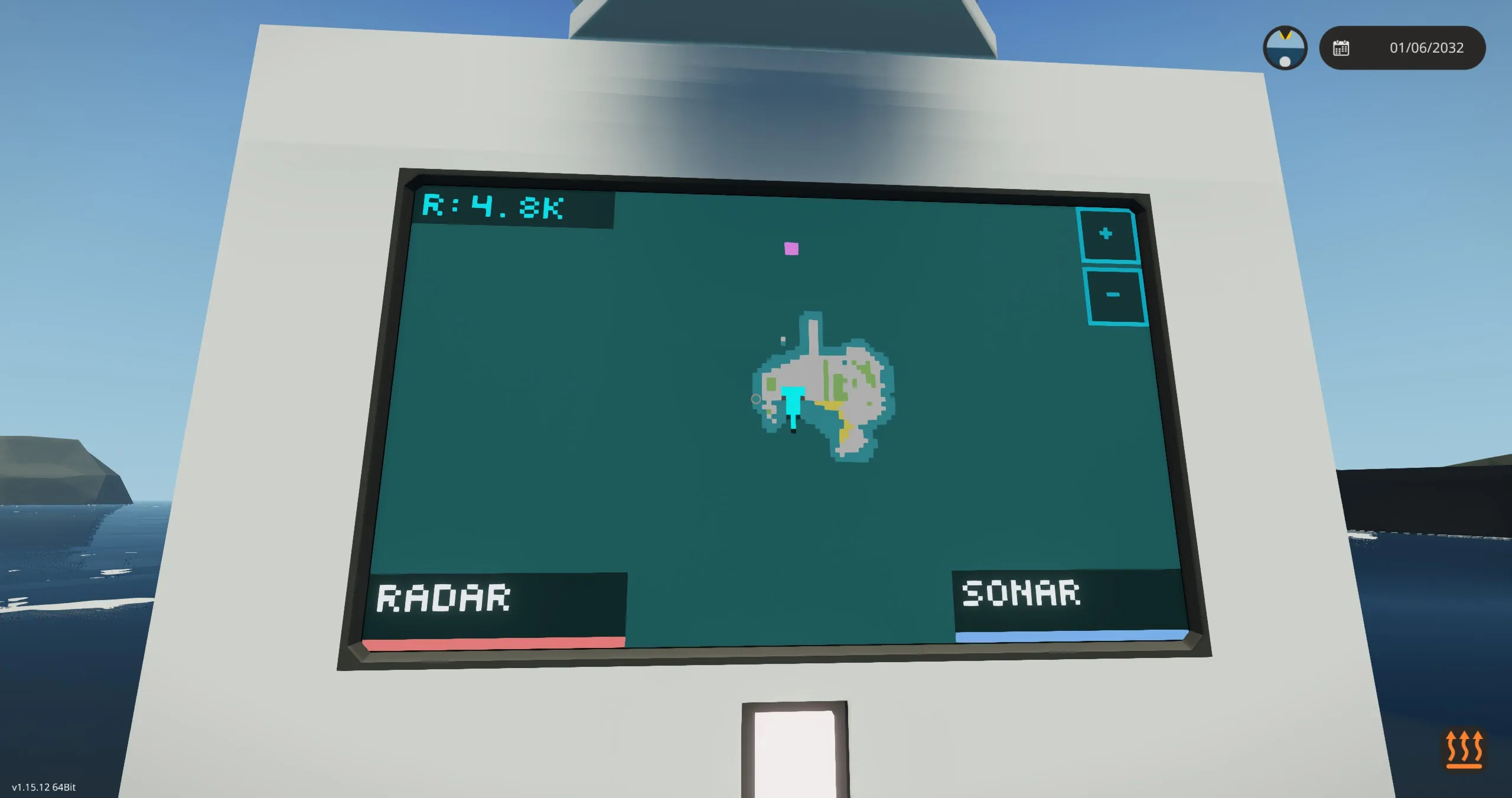 The display contains a simple tactical touch UI that allows you to turn the radar/sonar on/off and also put the sonar into passive/active