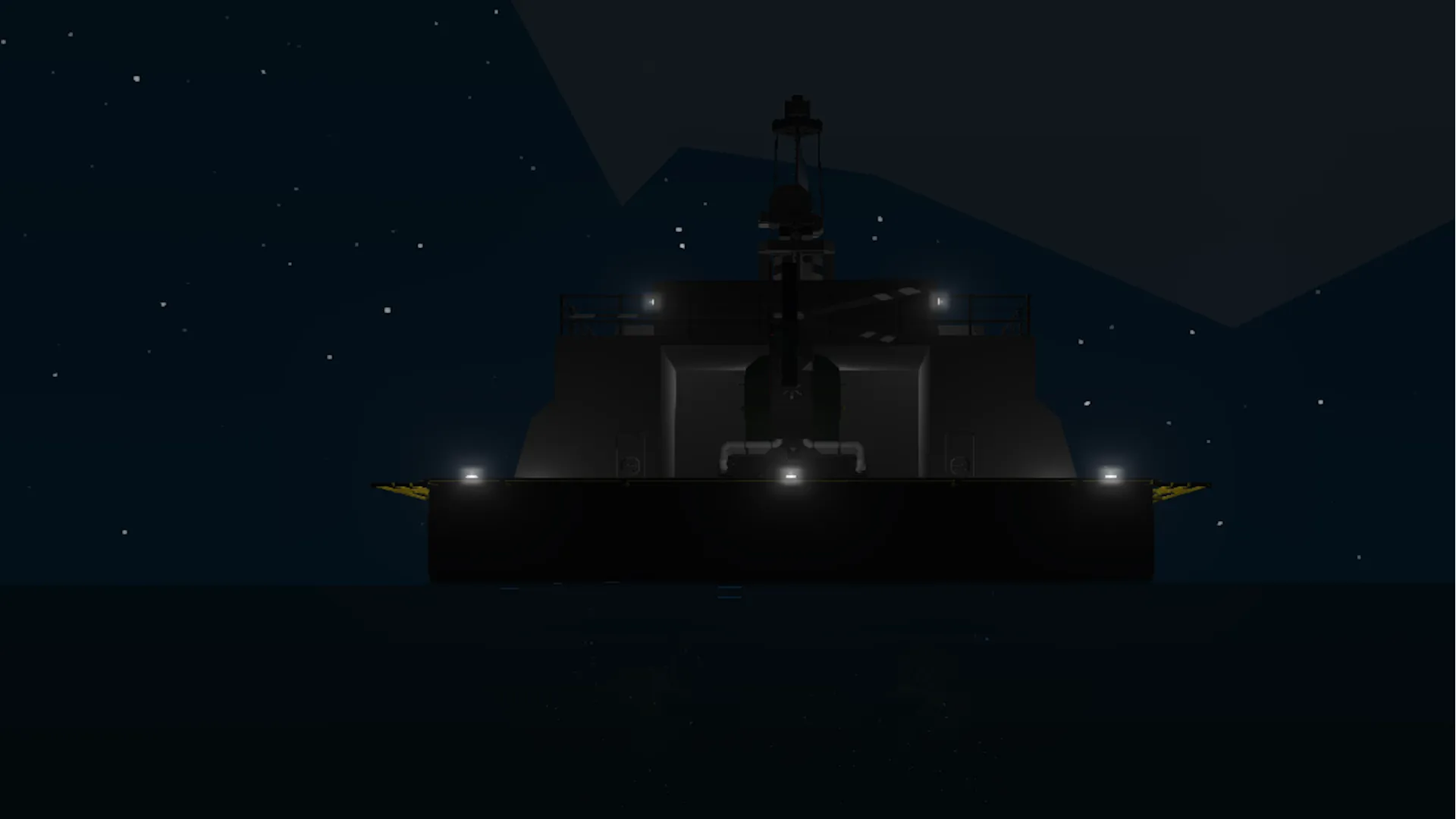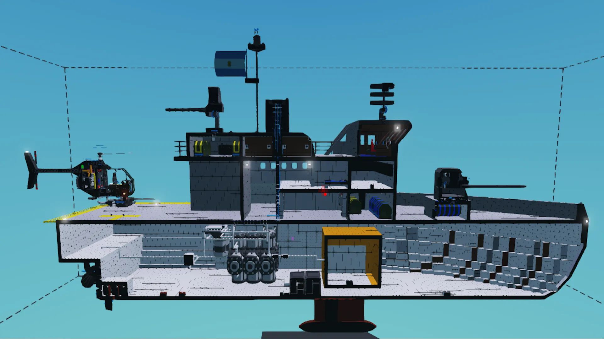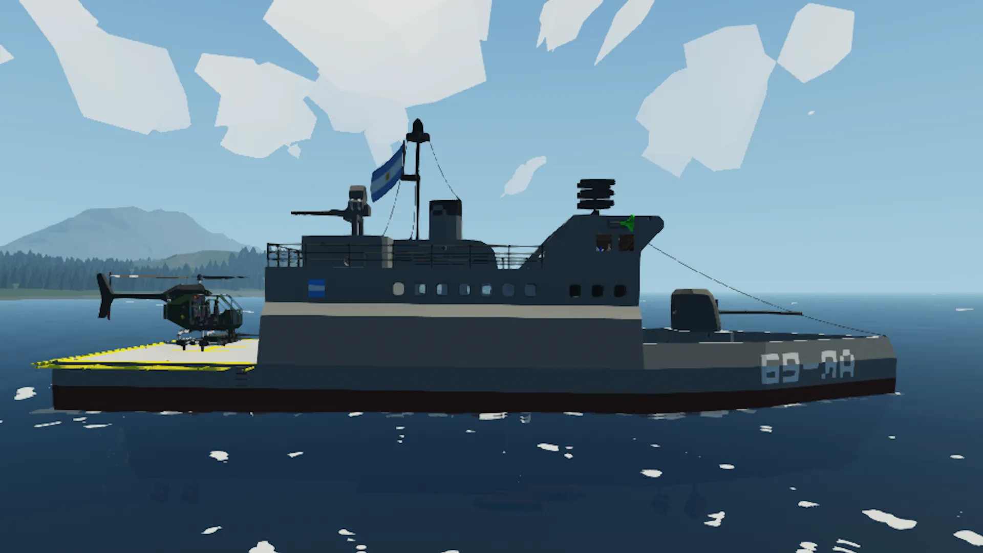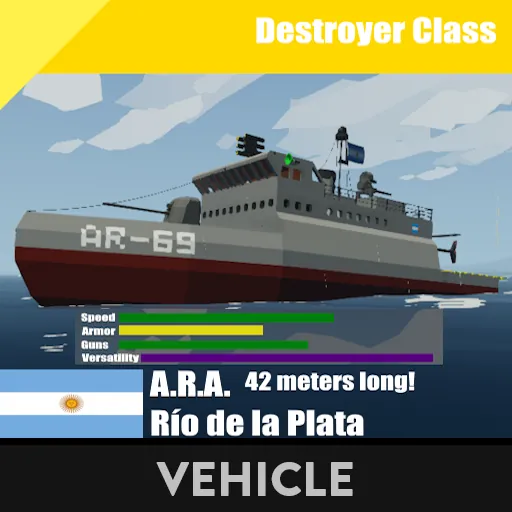 "A.R.A. Río de la Plata" is a destroyer 42 meters long, made for battles in shallow waters near the coast, likely for fighting pirates or non recognized boats. (fictional)
