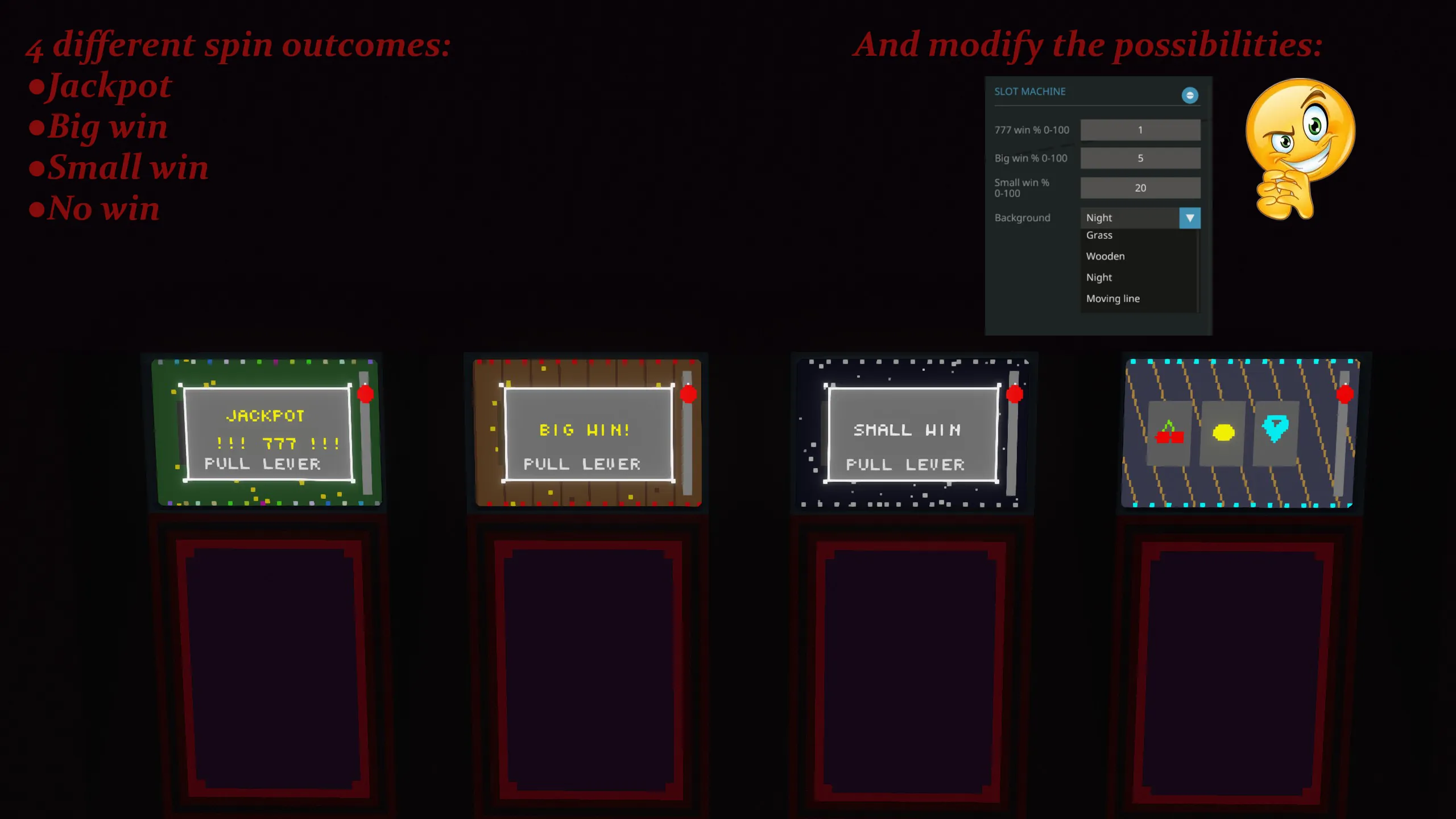 • 4 different winning possibilities: Jackpot, Big win, Small win, no win
