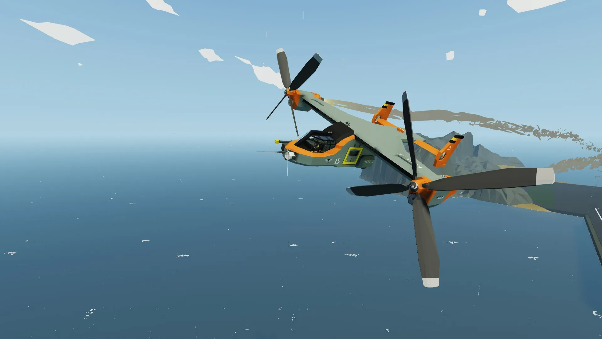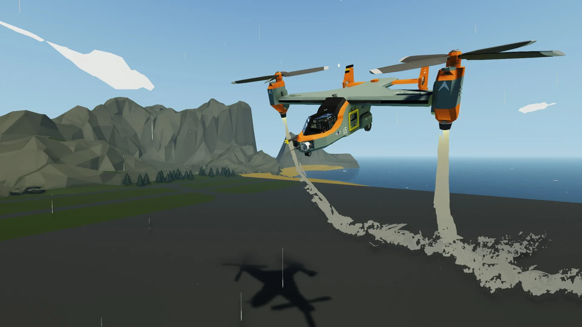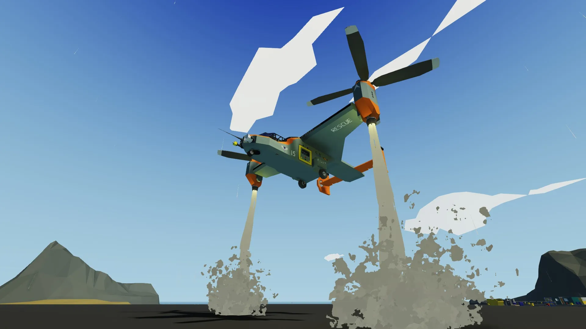 A little fun fact: I meant to post this VTOL a long time ago, but I totally forgot, so I decided to do it now that I have some time. The Magpie is a very capable VTOL all around. One of my proudest aircraft creations ever. She’s been fitted to assist the Coast Guard and Stormworks Military with two variants: the MPV-1A (Multipurpose VTOL) and MPV-1B. The A variant prioritizes seating capacity (14 in total, including pilots), while the B variant prioritizes proper SAR operation equipment or, for the Military, proper Touch-and-Go missions, and transportation (8-10 in total, including pilots).