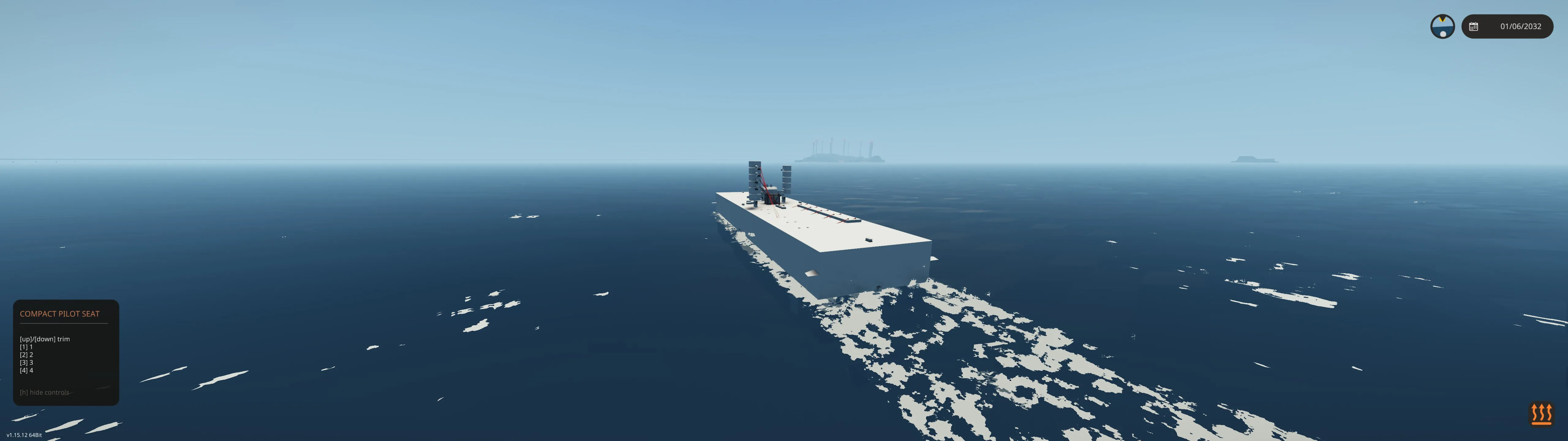 Flat 10 steam piston setup in the hull no flywheels.