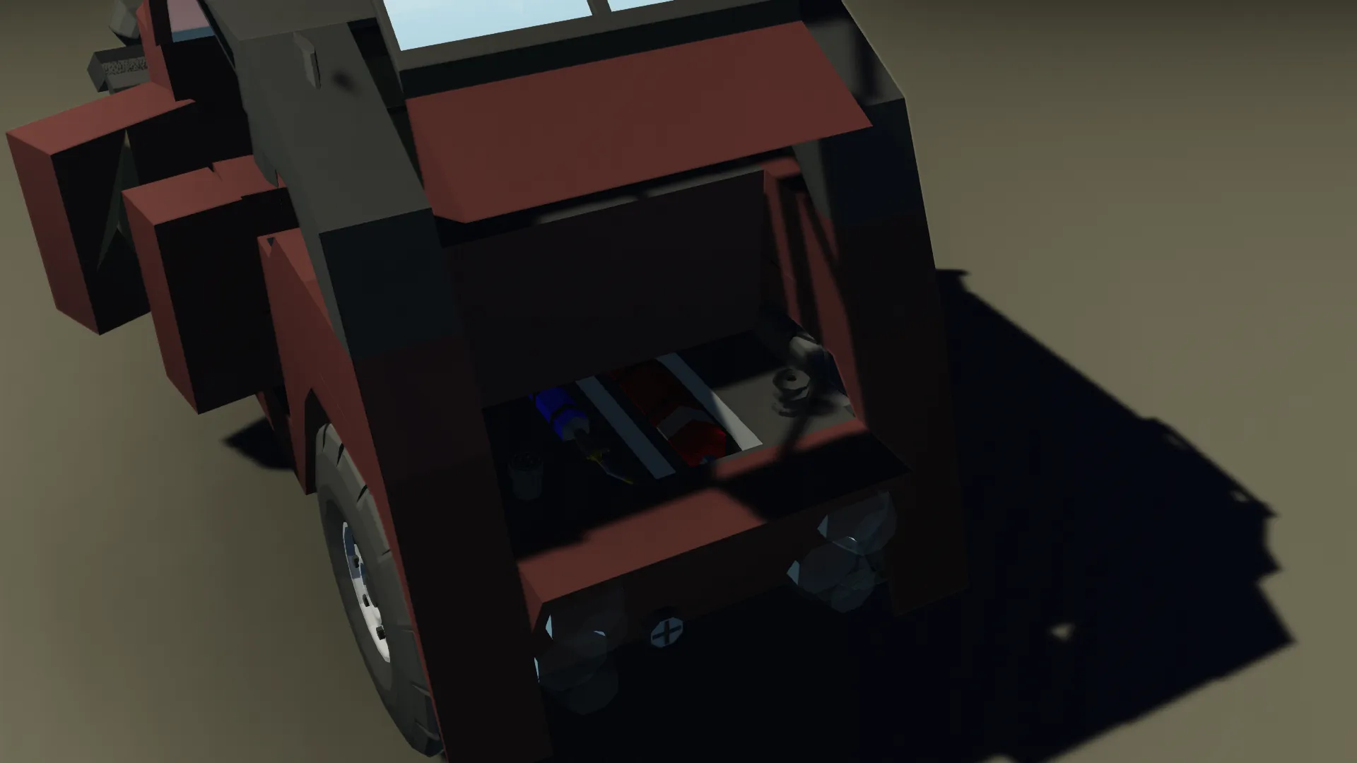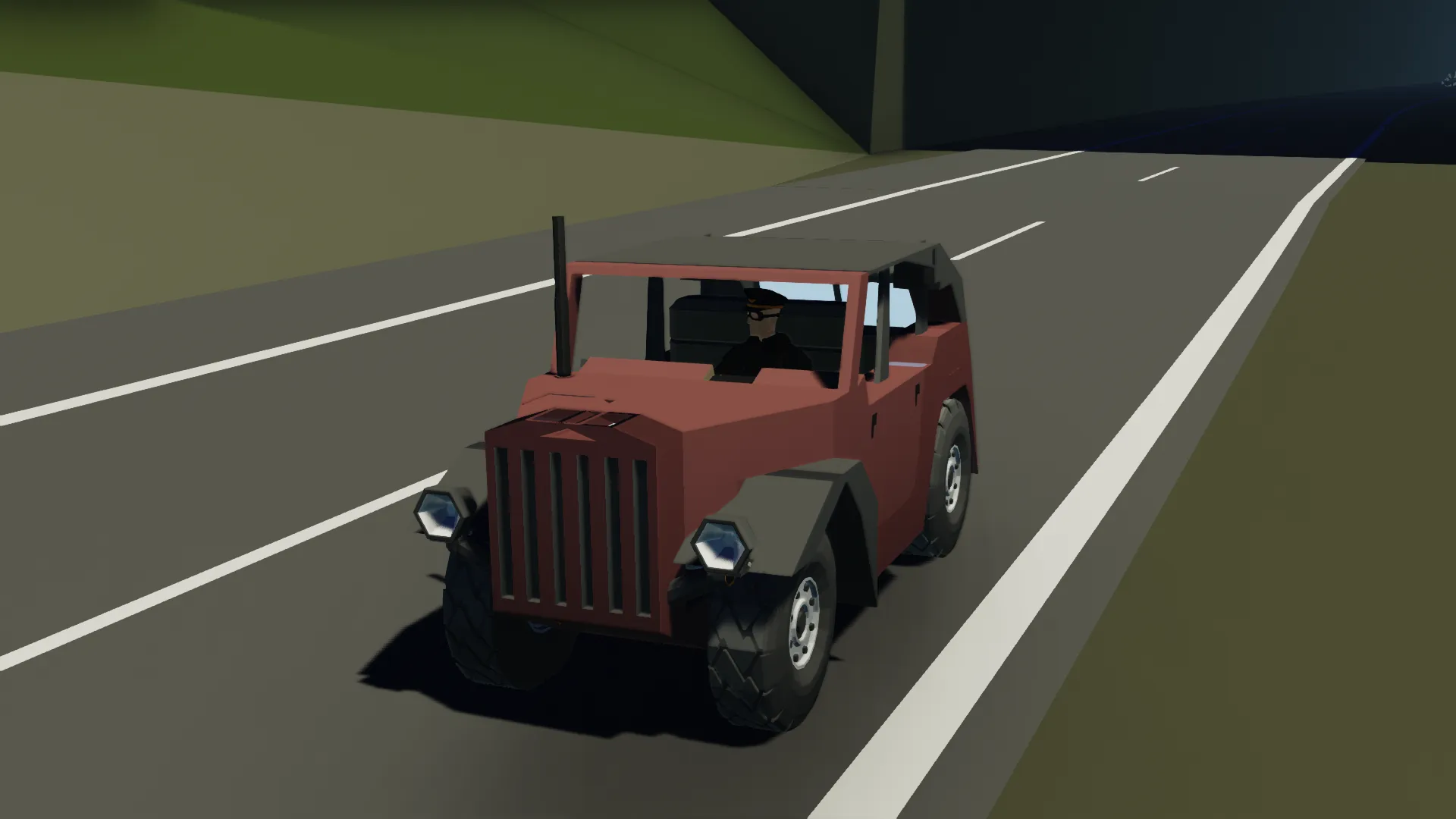 A car for the common man, in Stormworks. The kinda thing you'd see stamped out of a National Socialist's auto manufactory. Great efficiency and reliability when you hit roads the regime's workers haven't prepared yet.