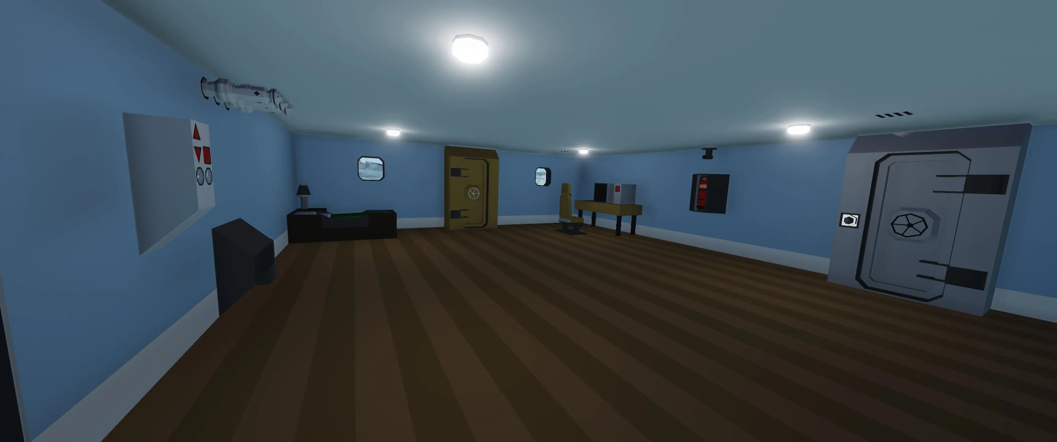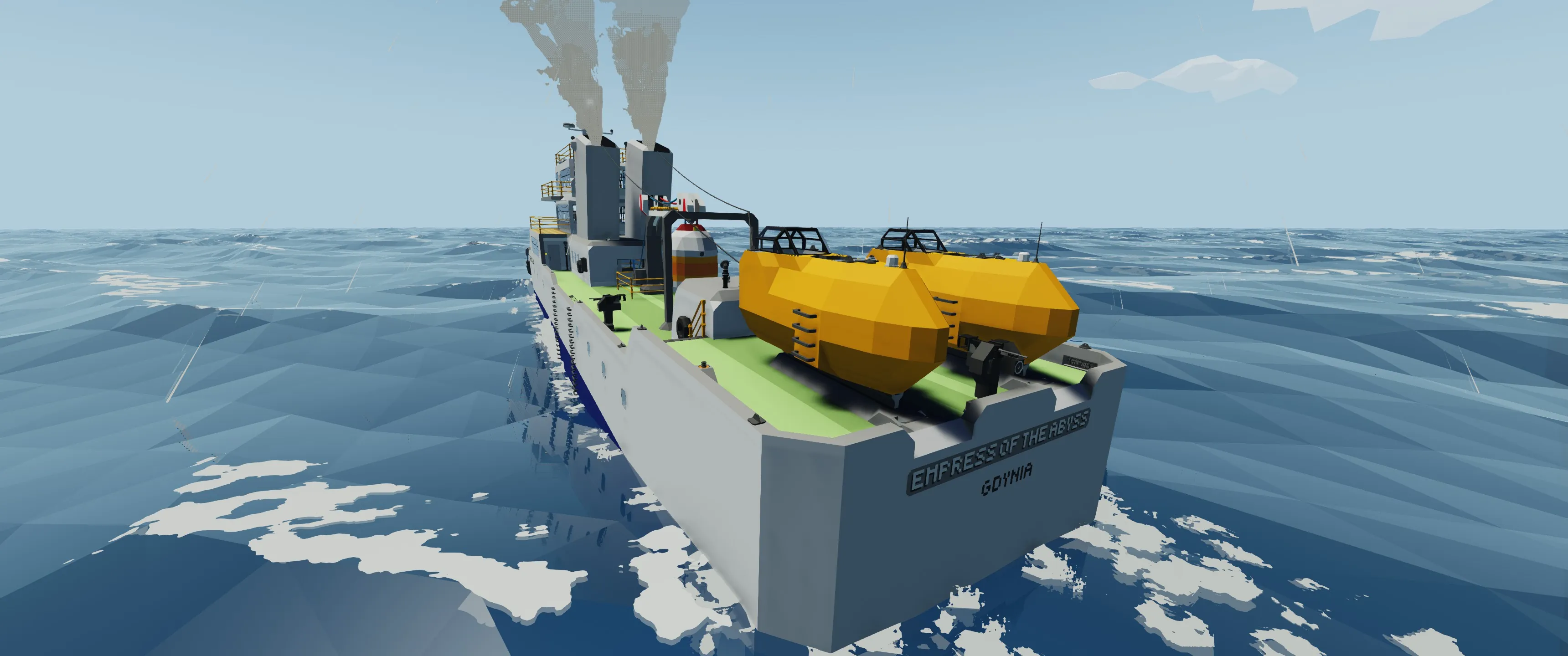 However, if all goes tits up, Empress Of The Abyss cares for her crew. That's why it is equipped with two open ocean capable lifeboats, that can be deployed both from the deck, and from inside of the lifeboats. Equipped with electric powered propellers, solar panels and hand crank, they can support fleeing crew for a long time, hosting even a bed. And with all that, the lifeboats are virtually unsinkable.
