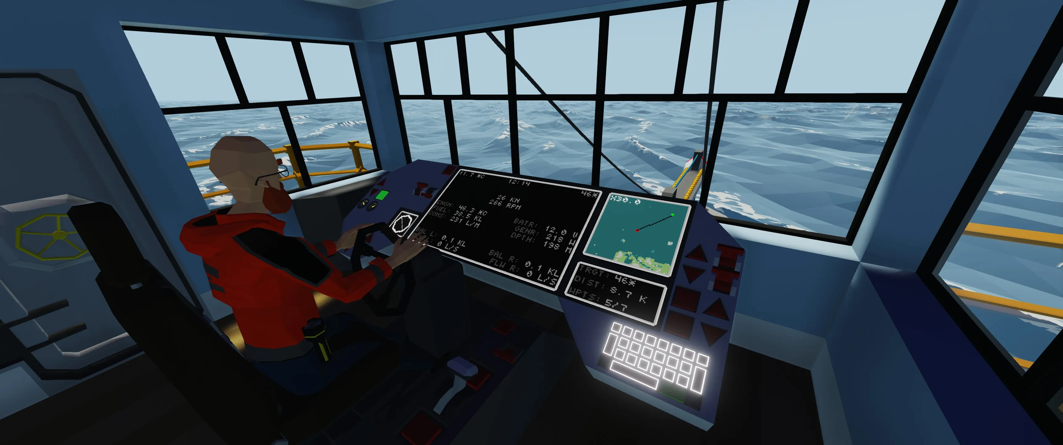 The crew (of which she can house up to six + the captain) has a plethora of high-tech systems to aid in open ocean navigation, such as: