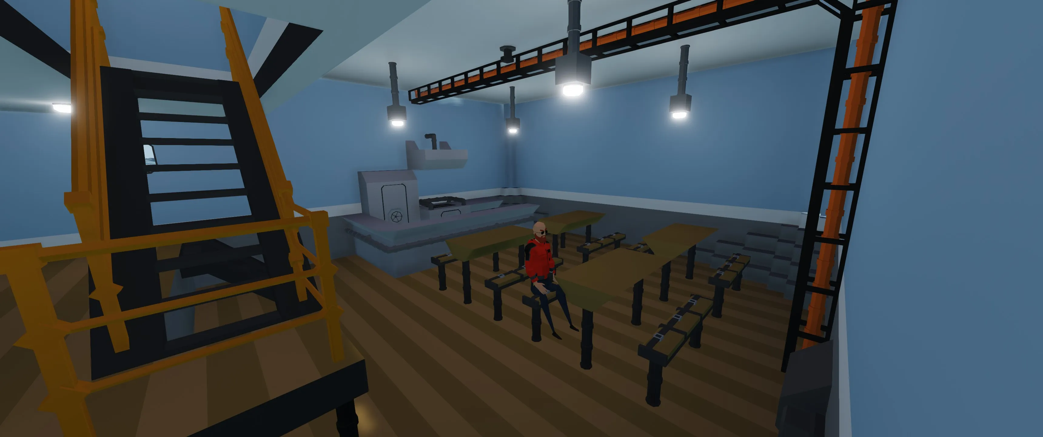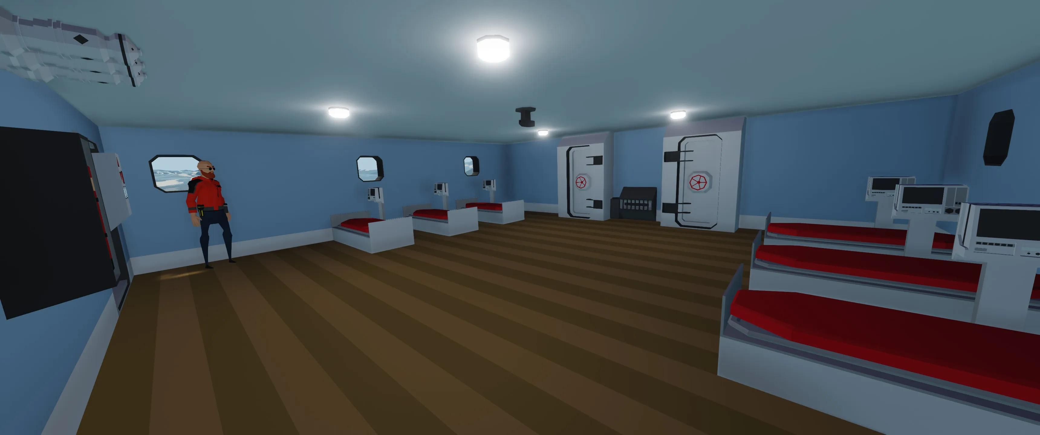 Stern section however is where the fun happens. It houses the mess hall with fully equipped kitchen, as well as hospital ward, so that the alcohol-poisoned crewman don't have to walk too far on the deck.