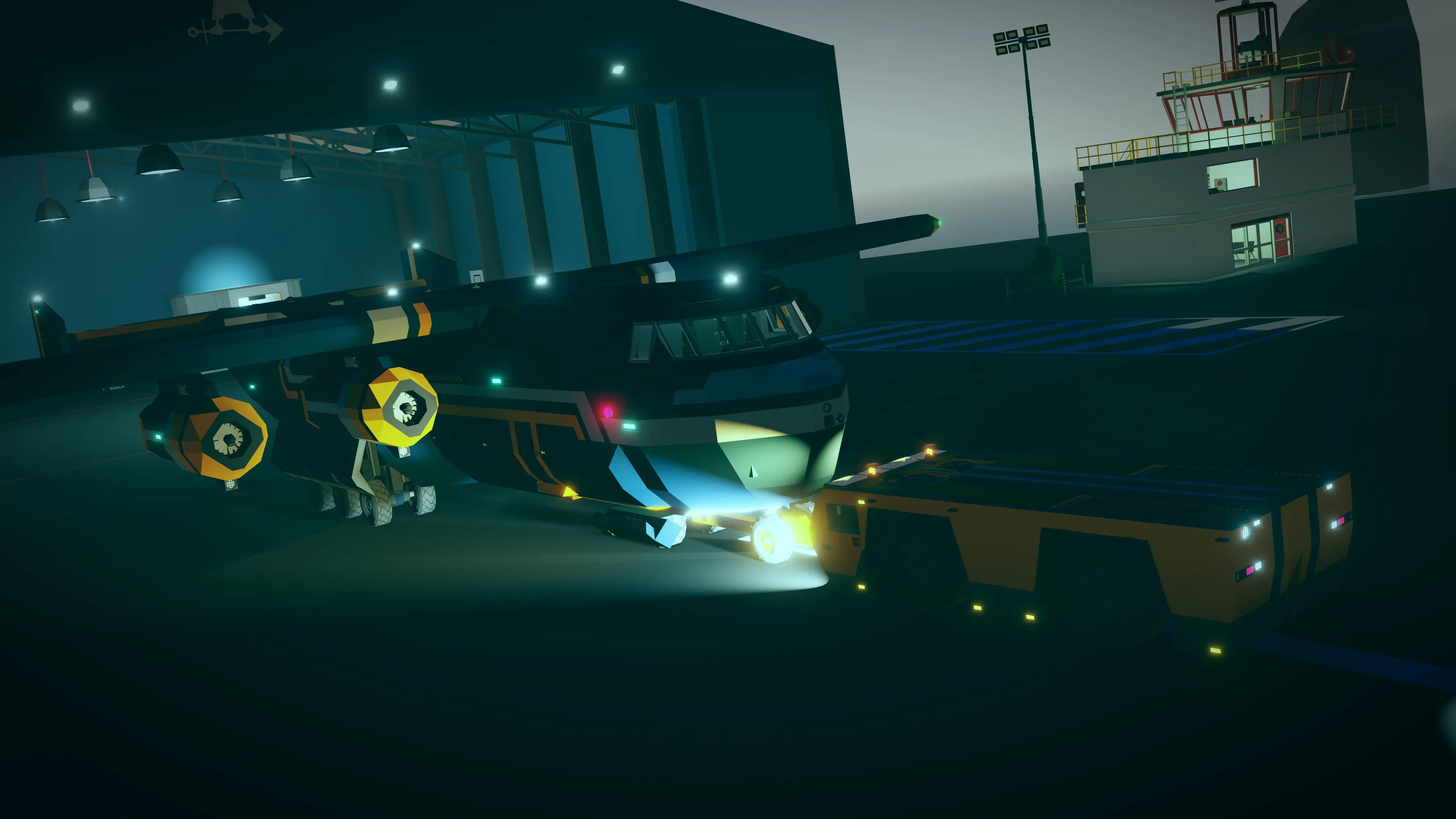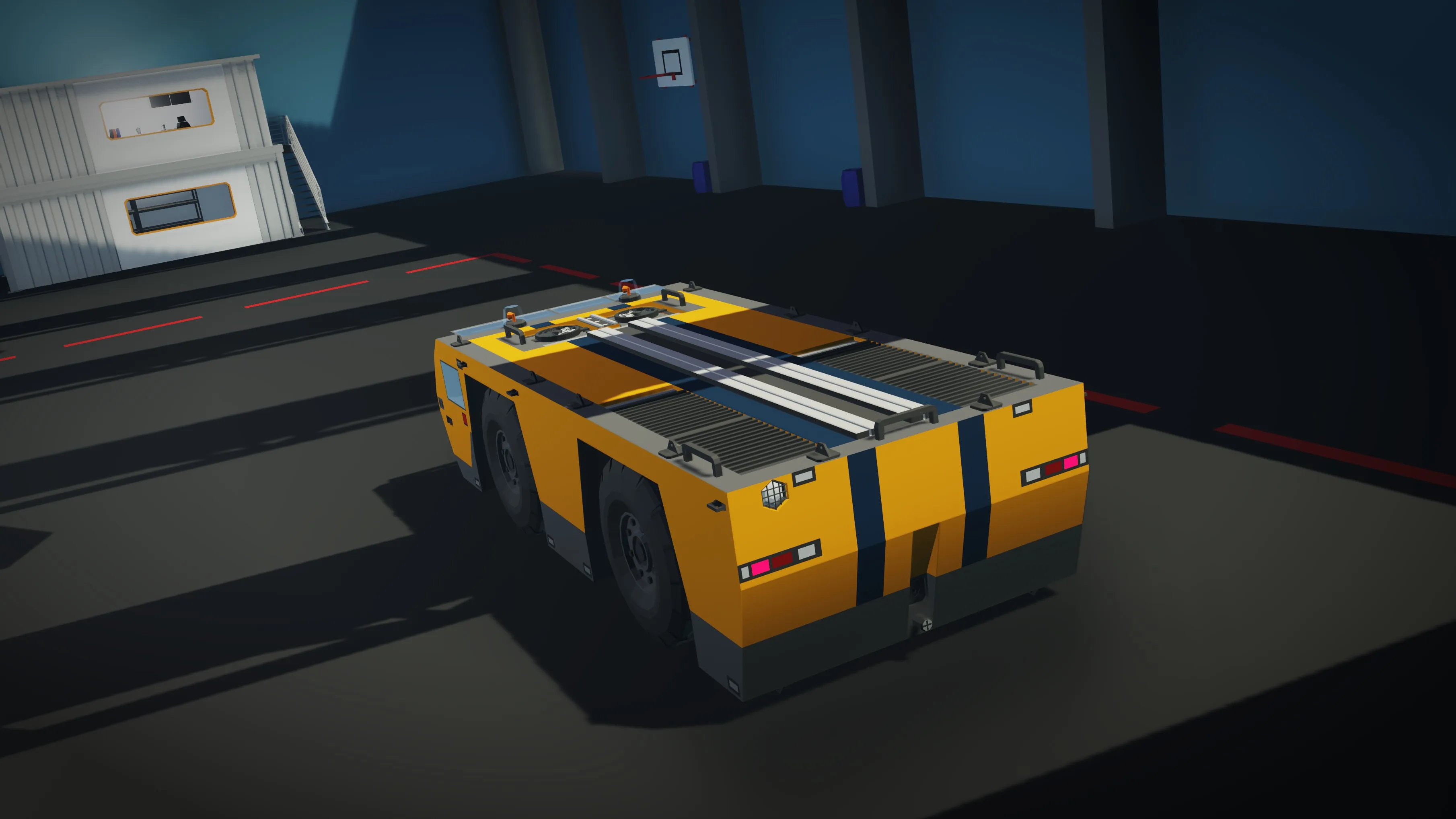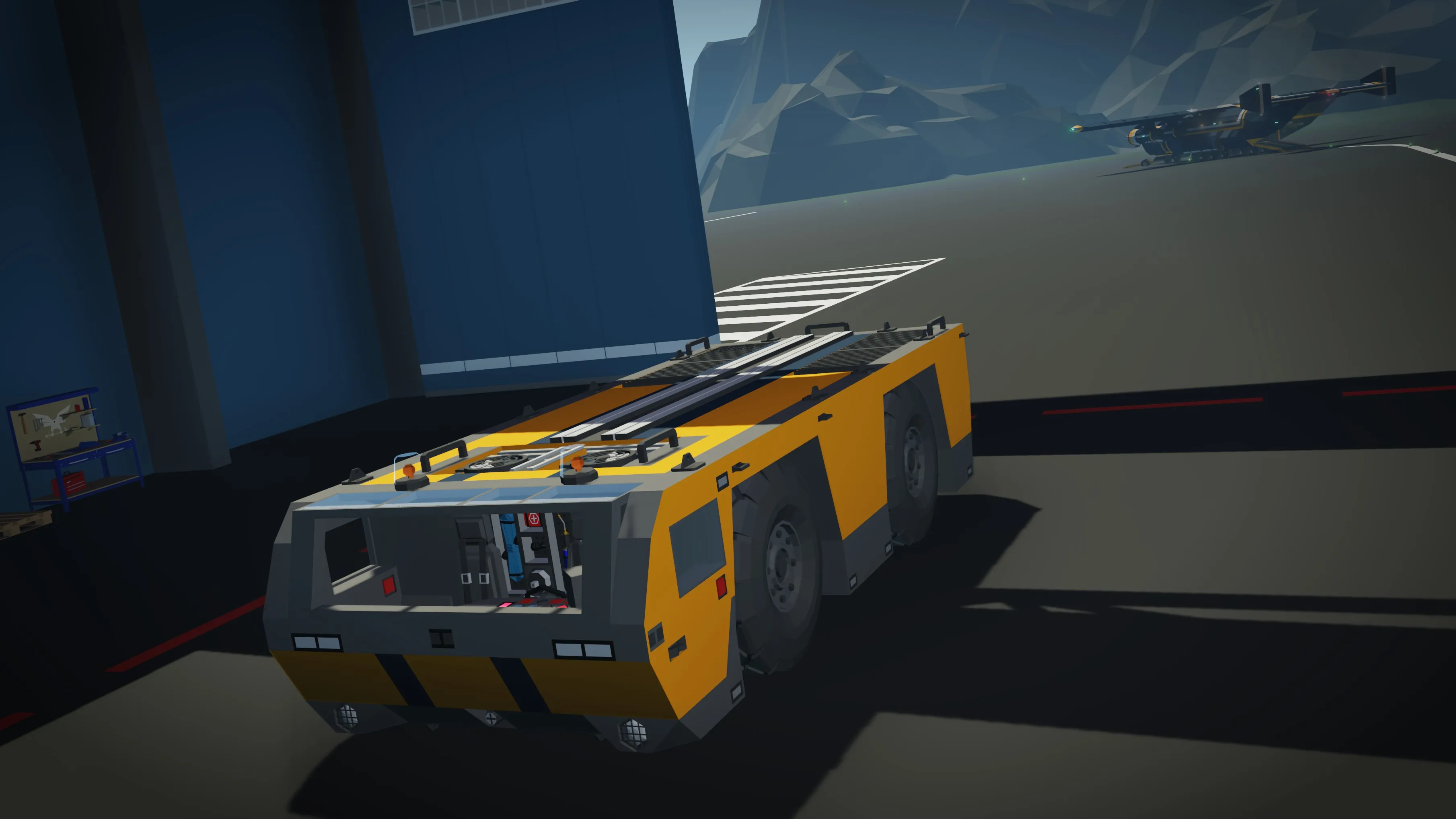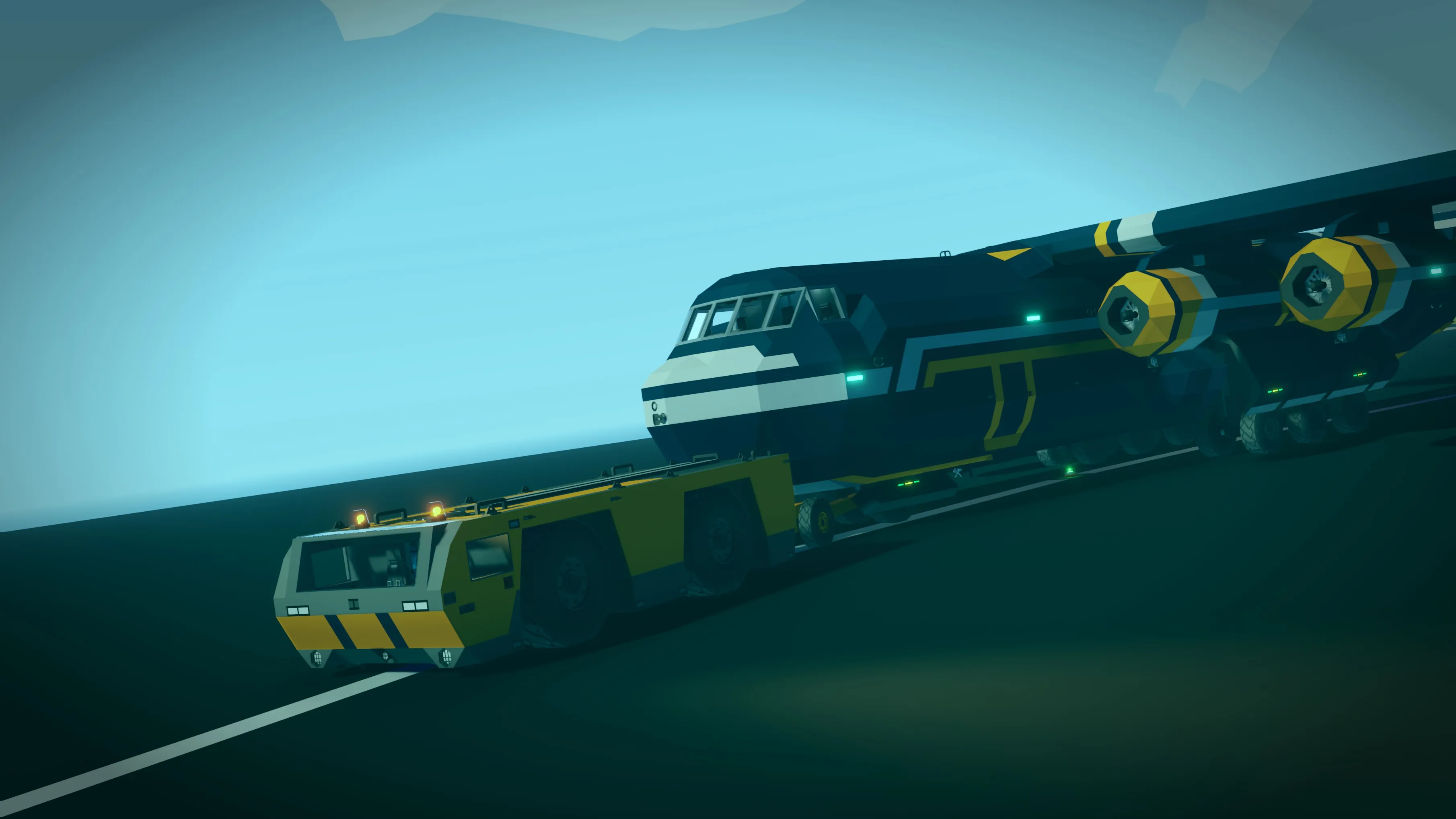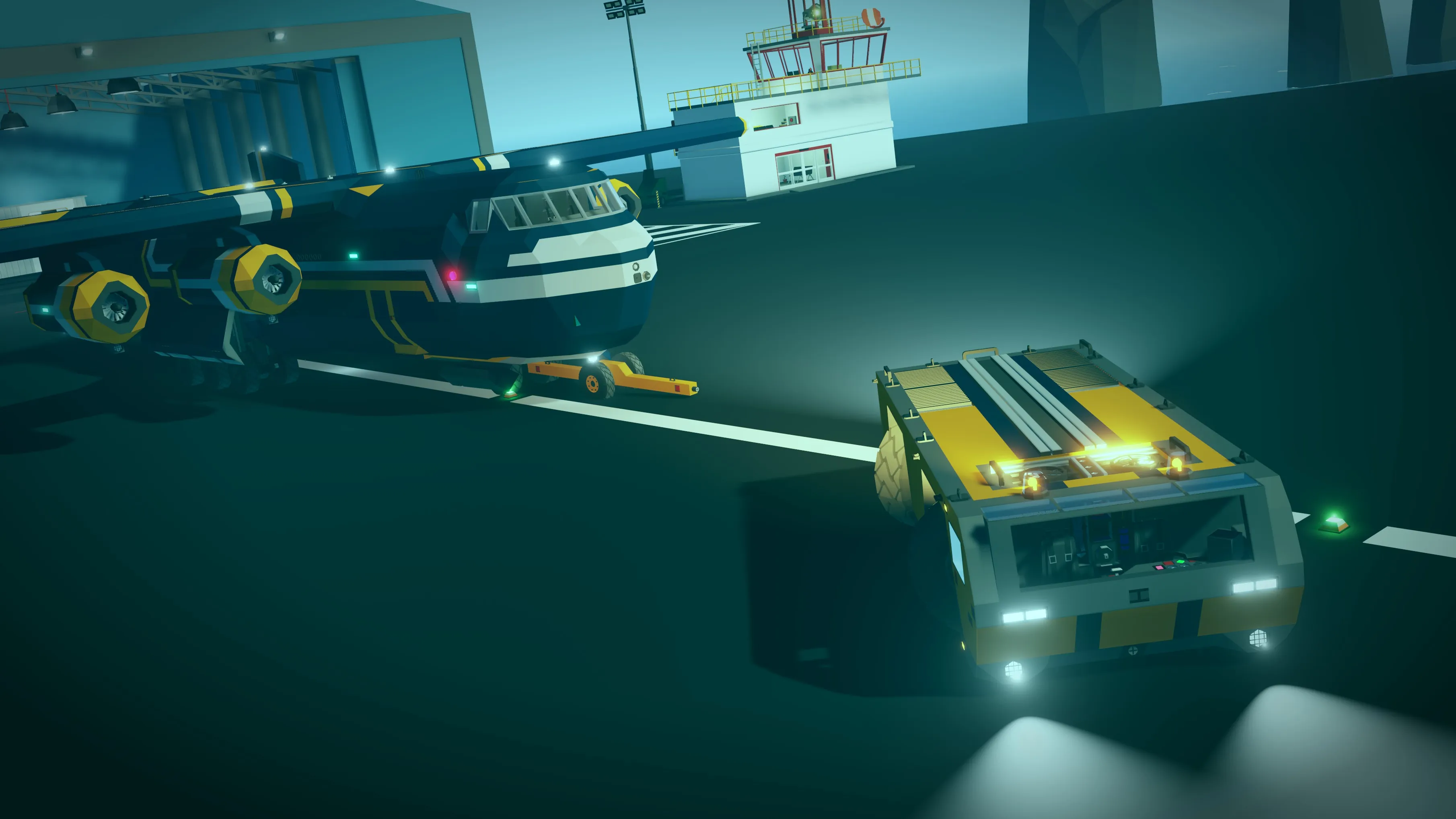 This type of transport is designed specifically for towing aircraft on the airfield. It has an ultra-maneuverable mode where all the wheels can be turned for use in tight areas of the airfield.
