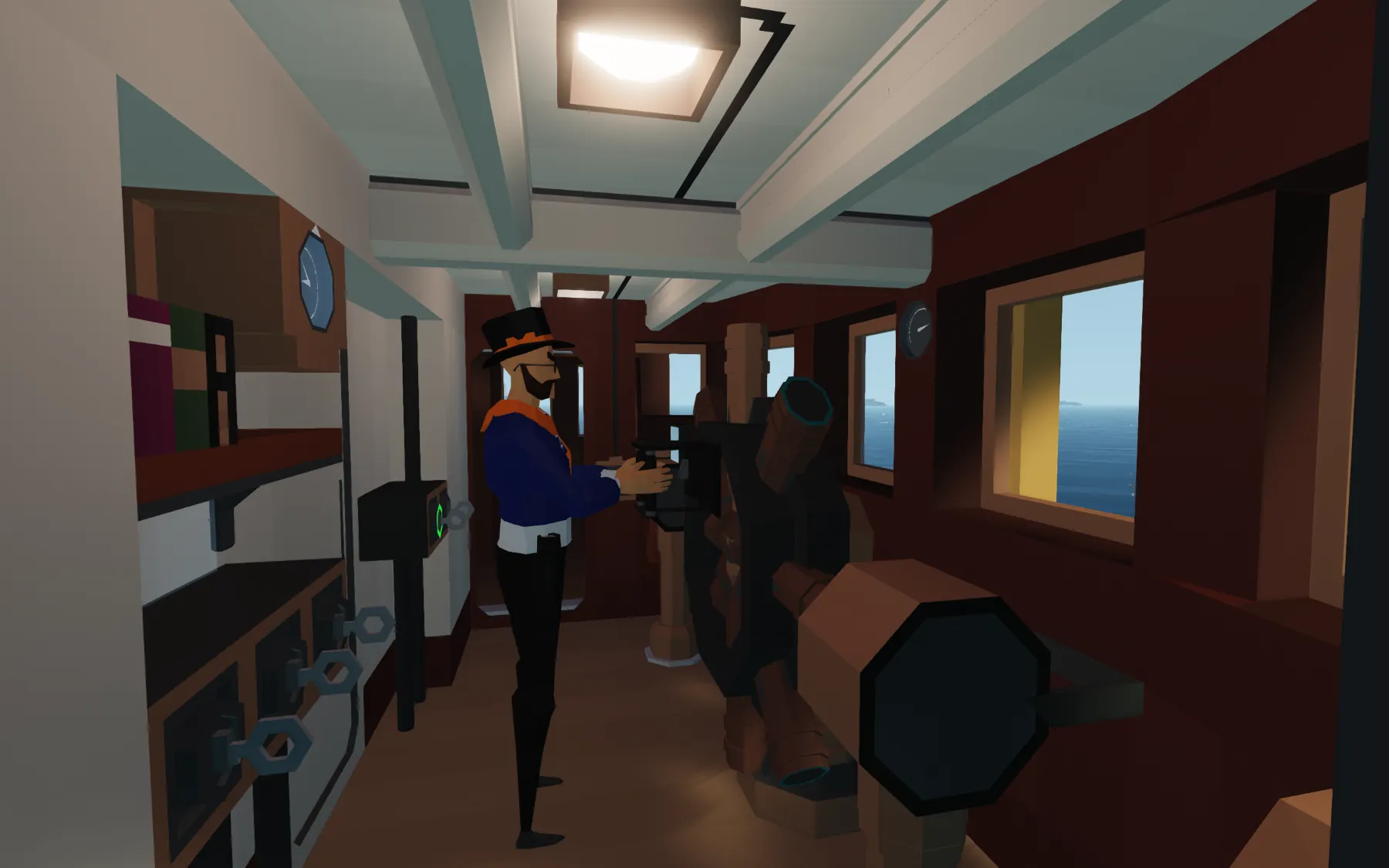[b] 6. [/b] From there, you should be good to go. You can control the engine both from a telegraph in the engine room and from the helm at the bridge.