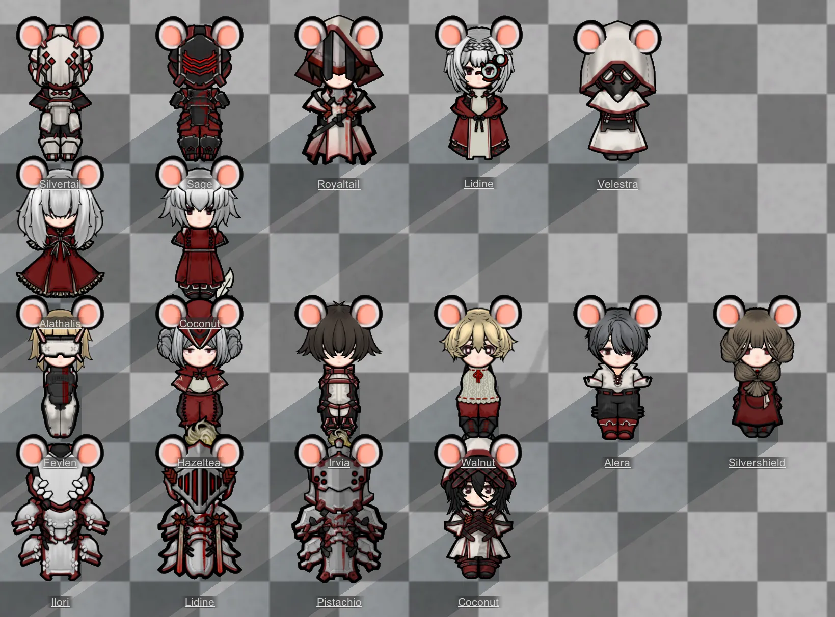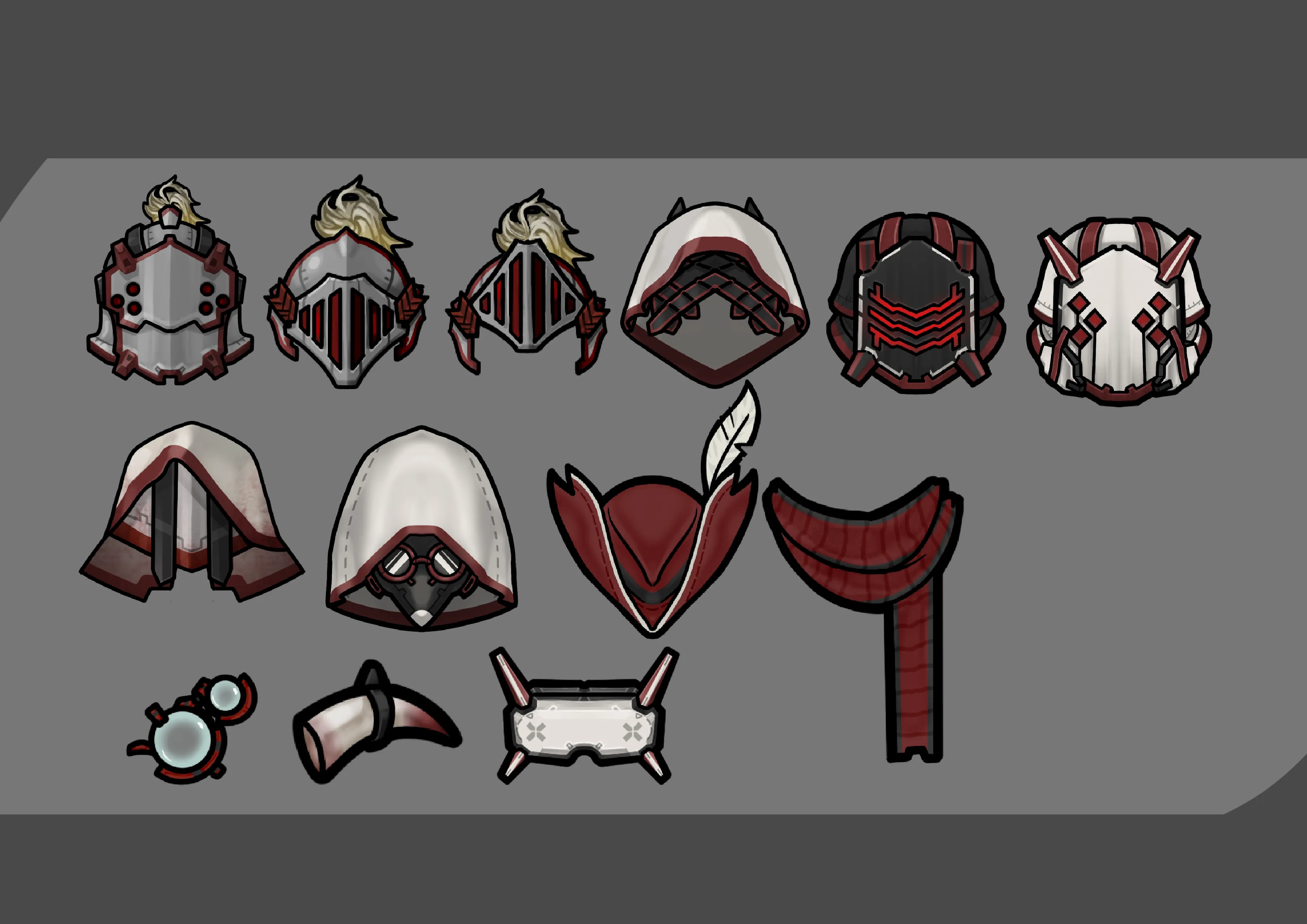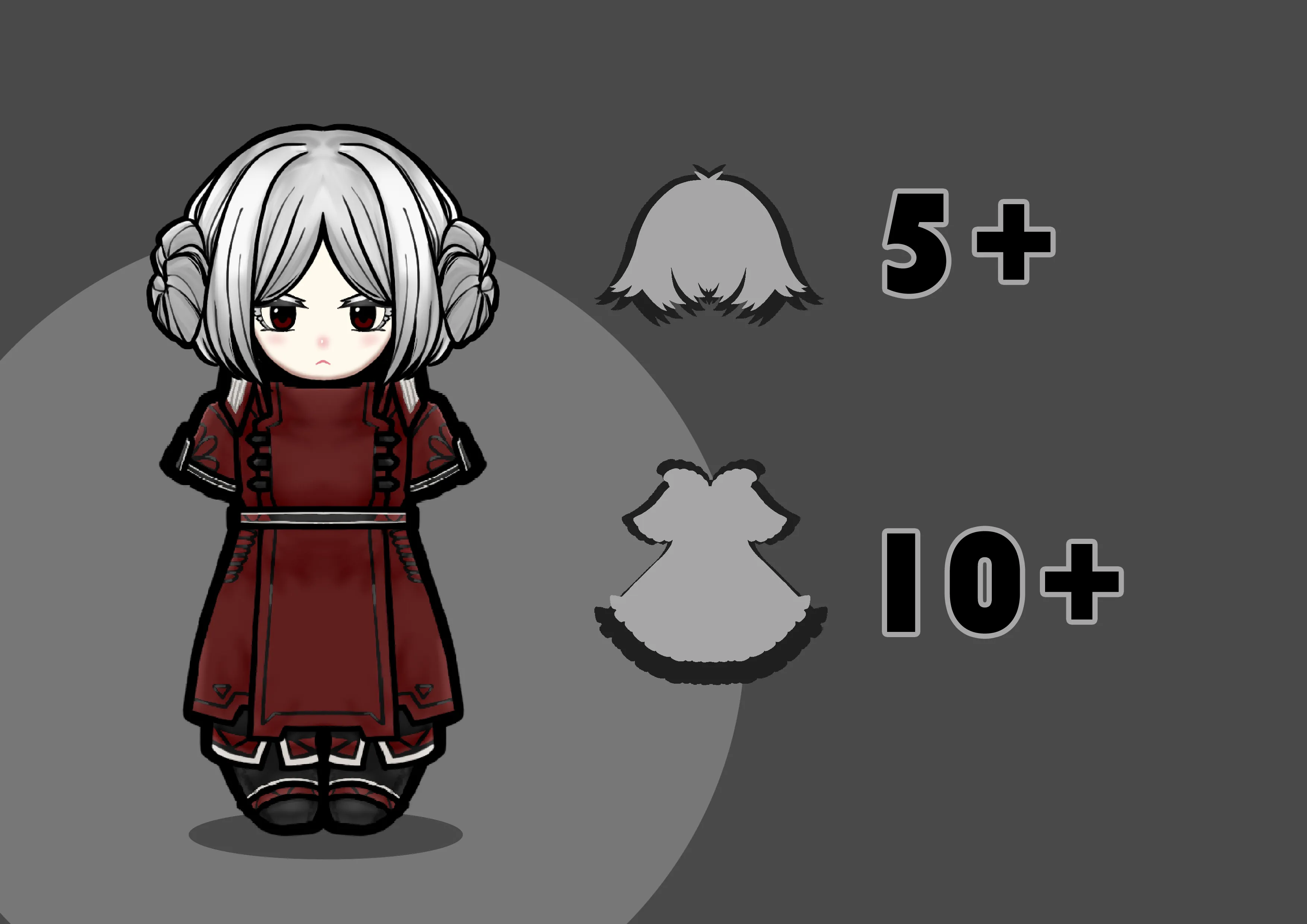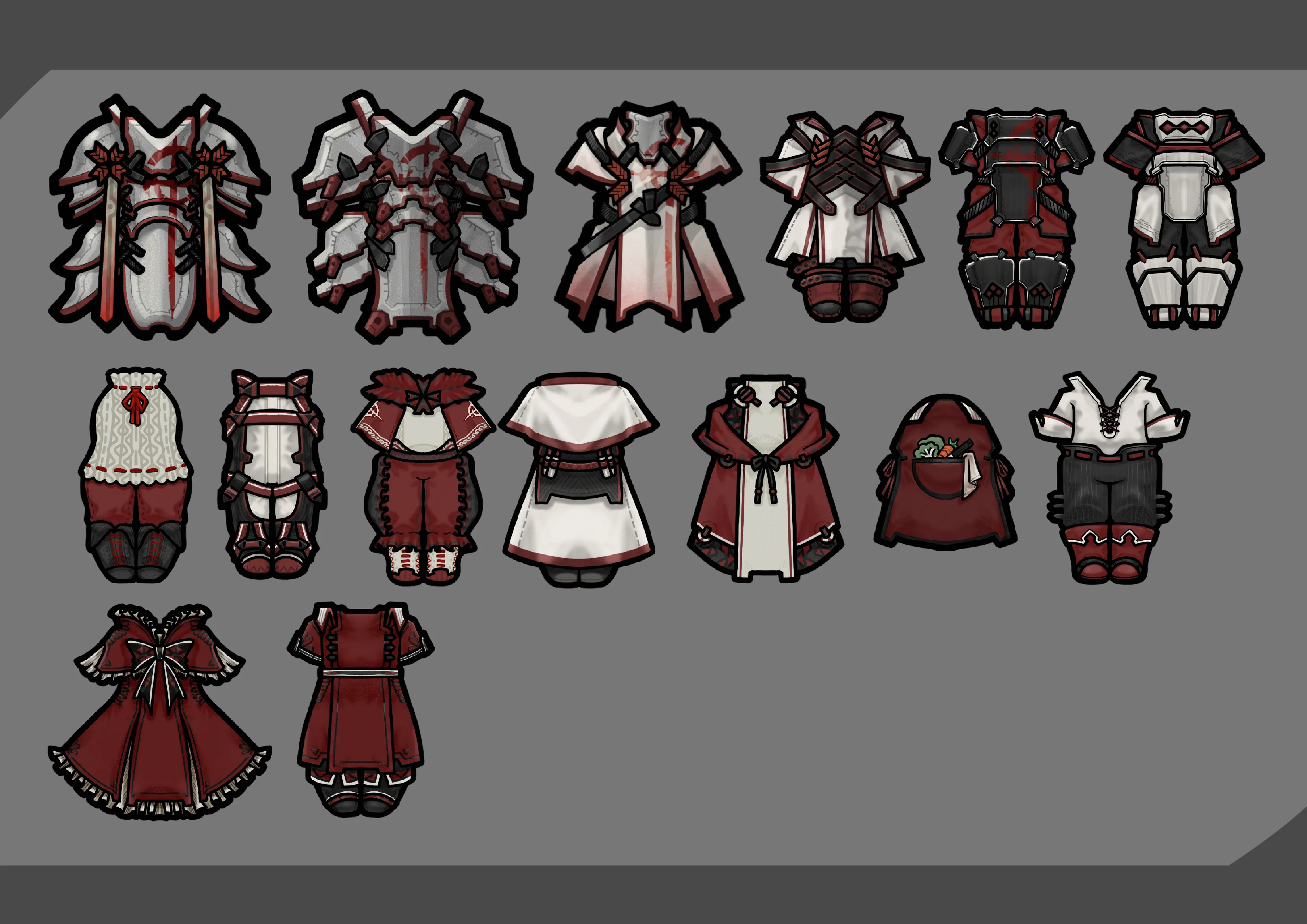 Currently there are 16 sets of clothing and 10 hairstyles,3weapons.
