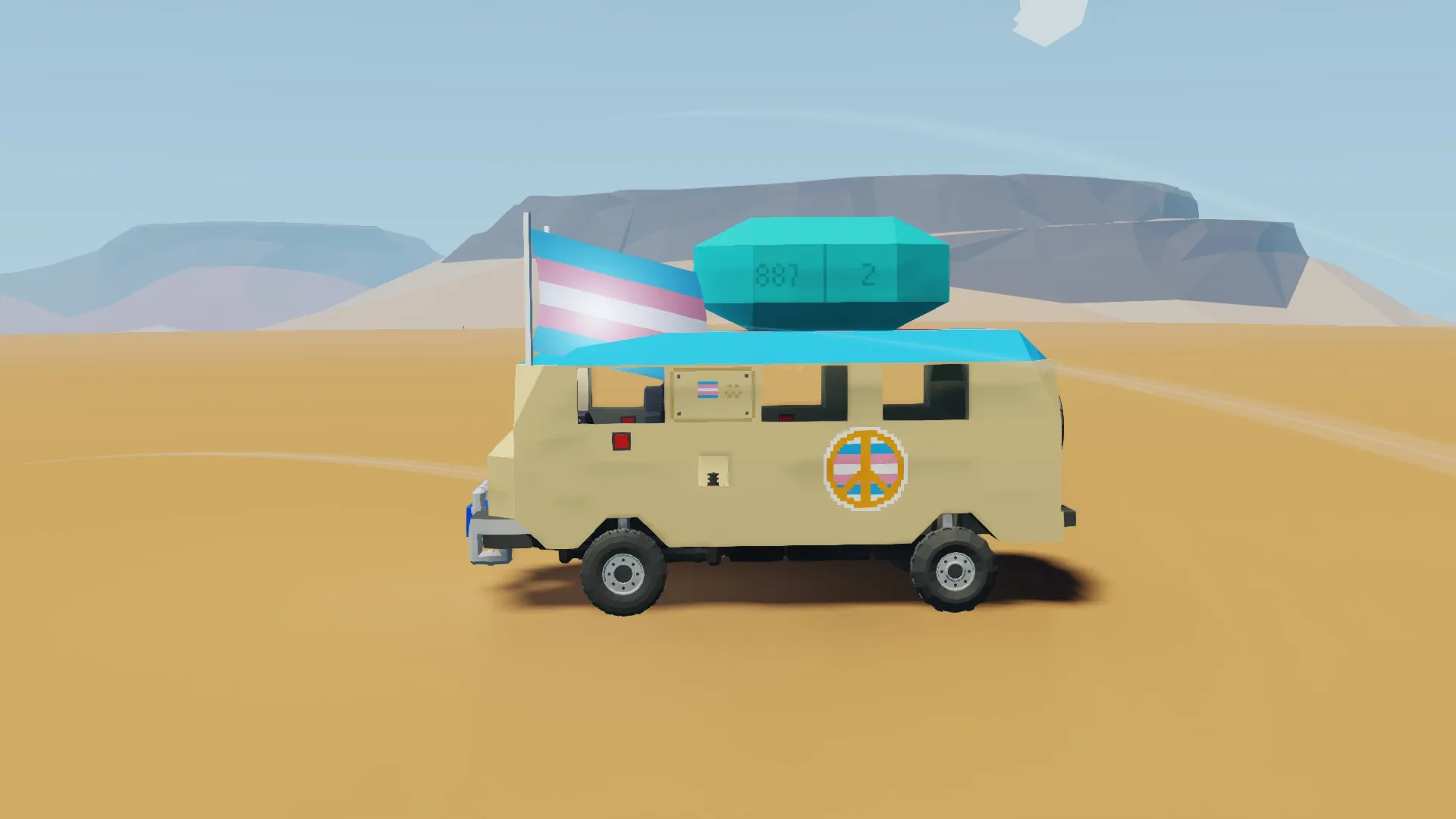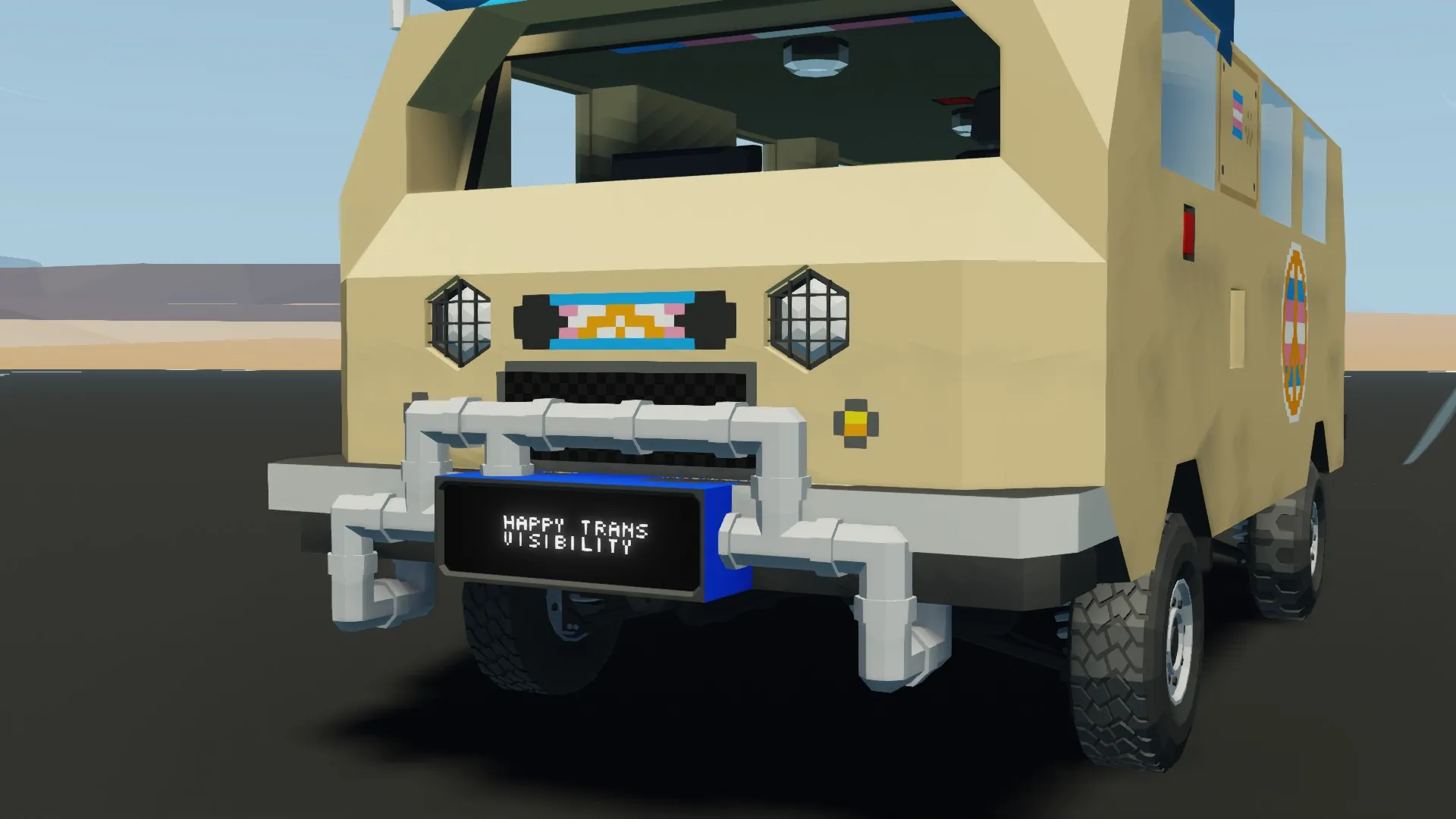 At Paz, we care about peace and love as our company name shows. Especially me, rat. This vehicle took me a moment to make because it's my first actual workshop build. This build is to celebrate the day of visibility of trans identities. Not only that, but it's also a call to whoever is reading this to spread peace, love and respect to everyone around the world, always try to be happy and the best version of yourself. I love you all, Paz loves you all <3