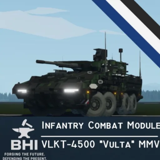 The [b]Infantry Combat Module[/b] is an enhanced combat configuration for the VLKT-4500 "Vulta", designed to provide both protected troop transport and direct fire support on the battlefield.