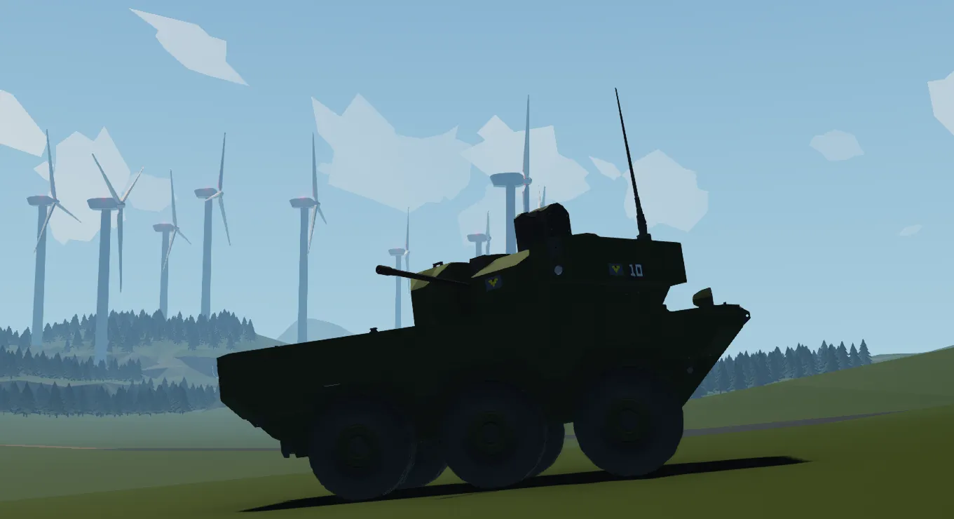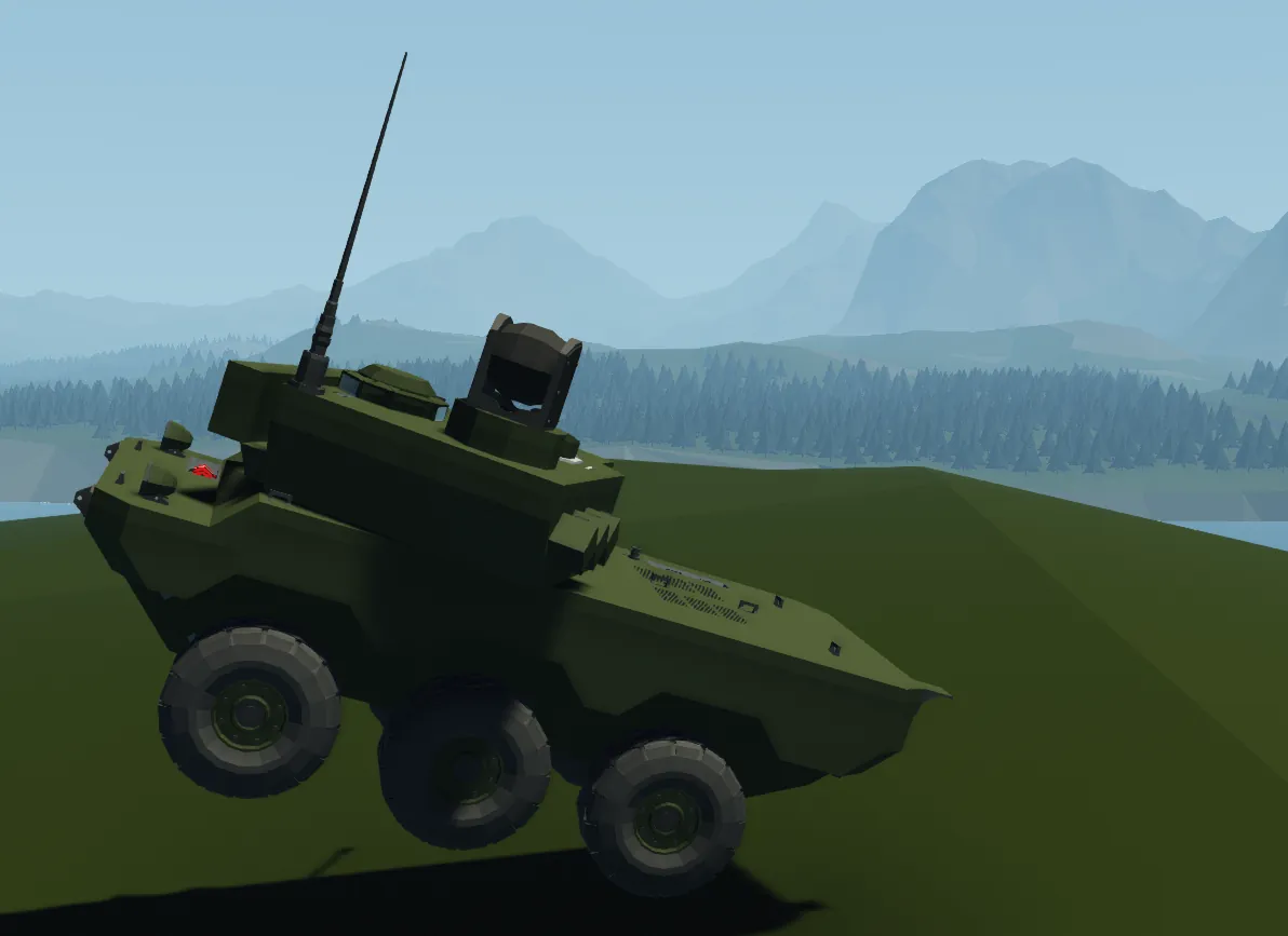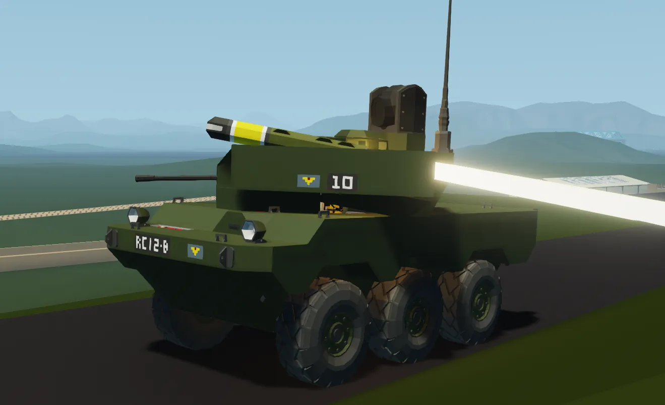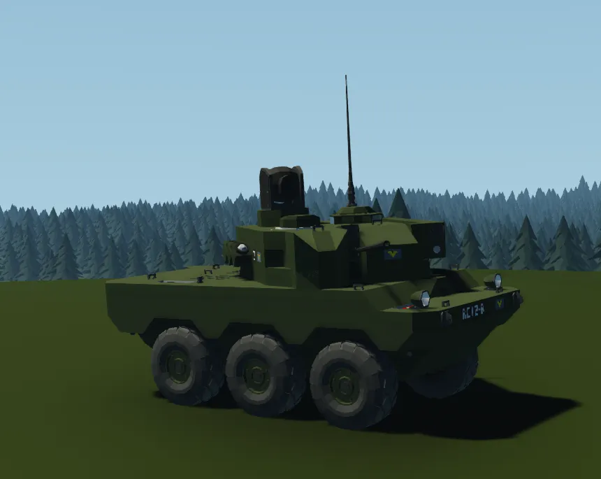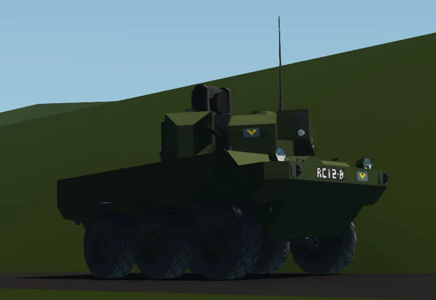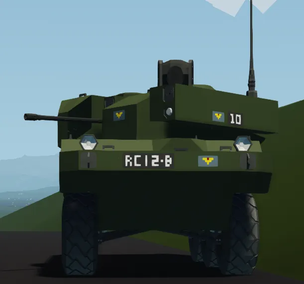 This is a fictional armoured scout car and armoured fighting vehicle heavily based on the French Jaguar. (the flag portrayed on the tank is a made up flag of a fictional country)