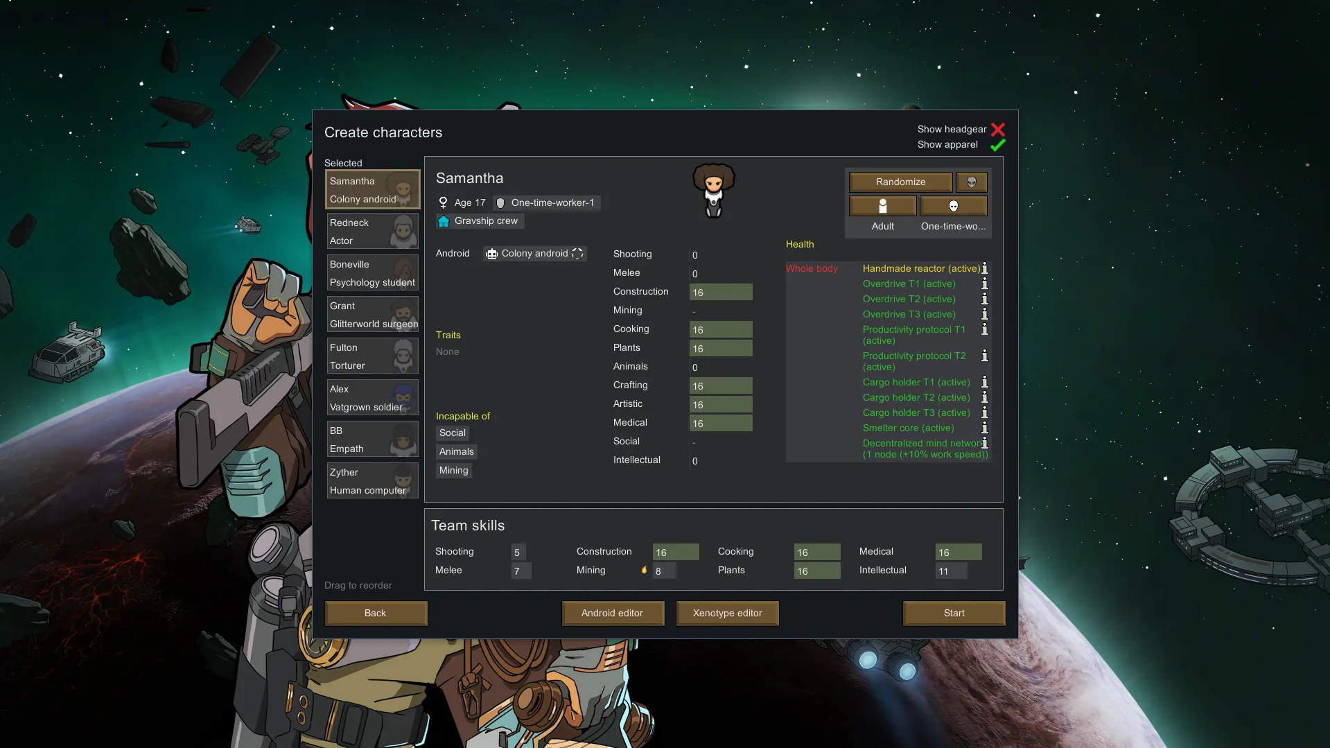 Have you ever wanted to create truly diverse builds for your androids? Not just make them overpowered as ♥♥♥♥ by maxing out all available skills, but build unique variants suitable for specific situations? Well, me too.