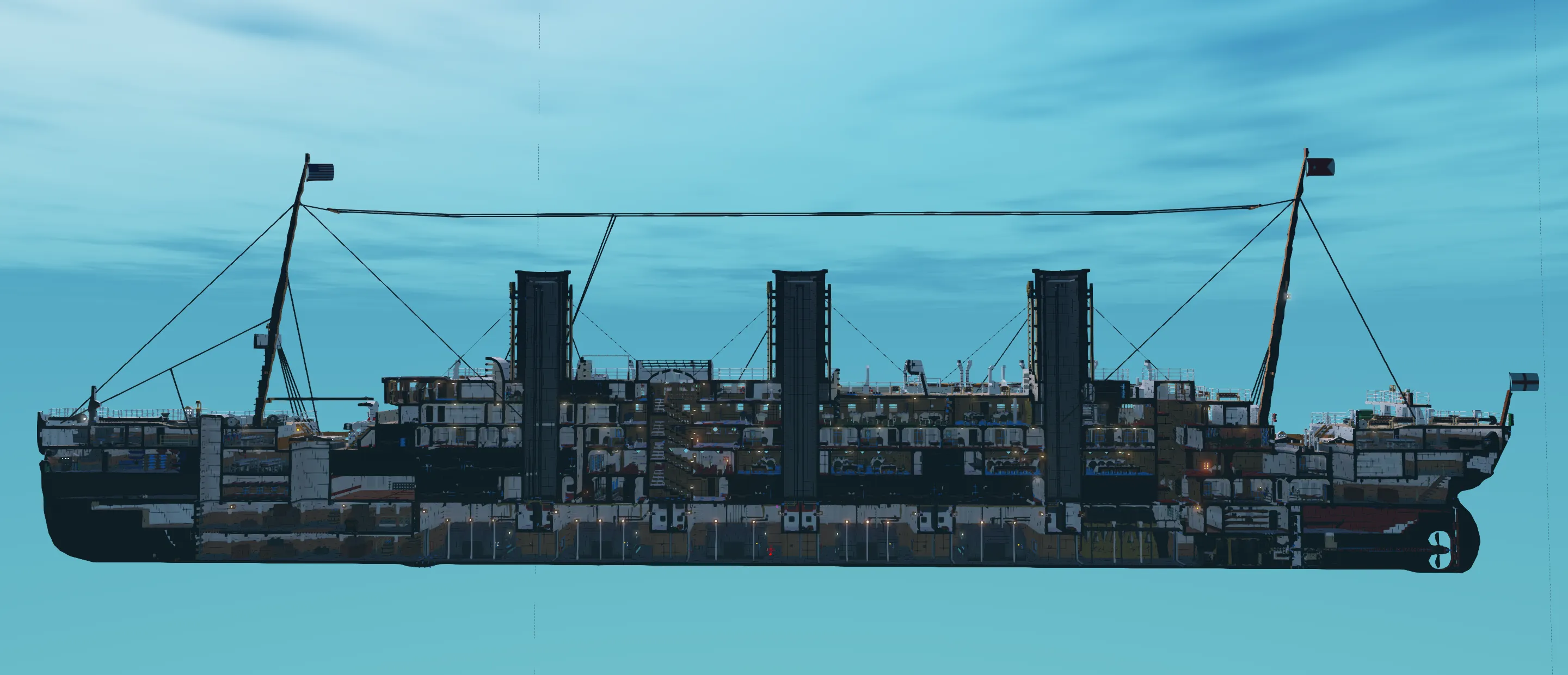 R.M.S Elyndria is a 1910s inspired full interior Ocean liner. Everything from the kitchen oven to the stowable anchor are designed to look accurate and be functional. It has taken approximately 6 months to build this ship, and I aim to build many more now I have a computer that can handle these kinds of projects.