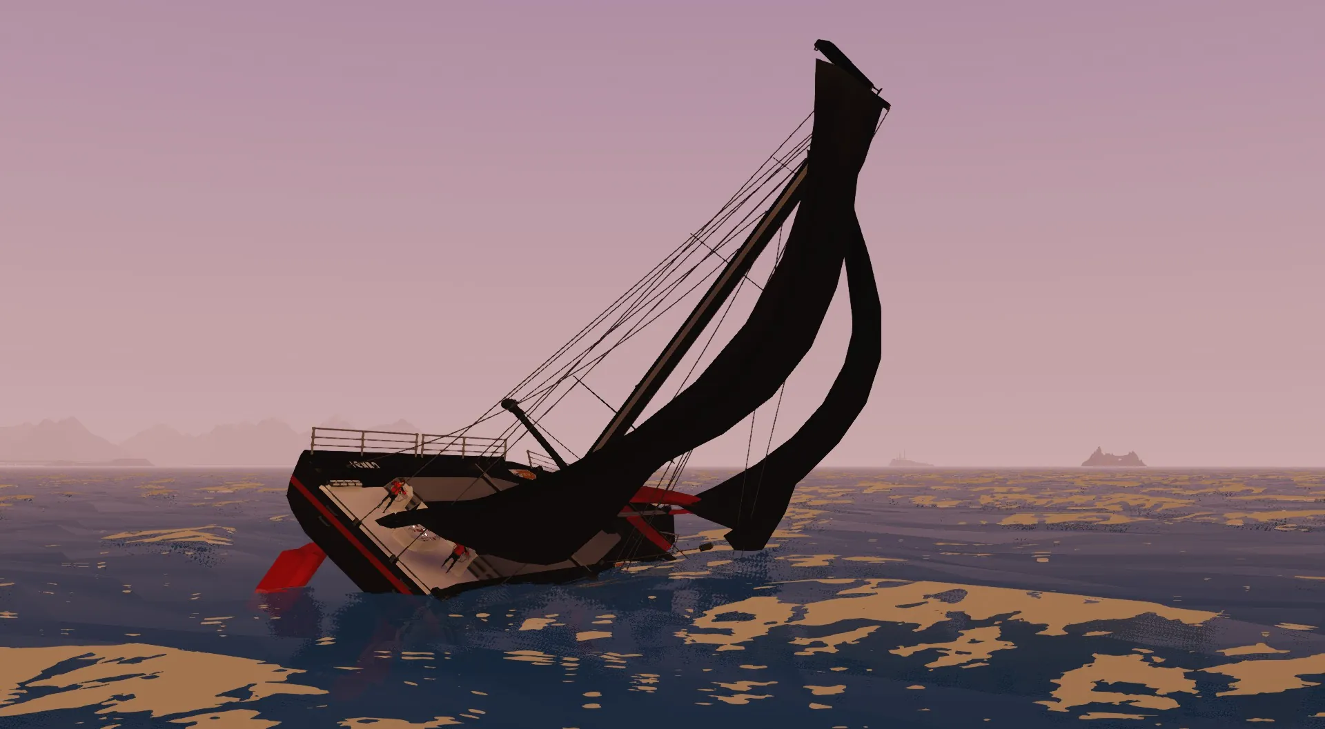 [*] Set both sails to the same side based on wind direction.