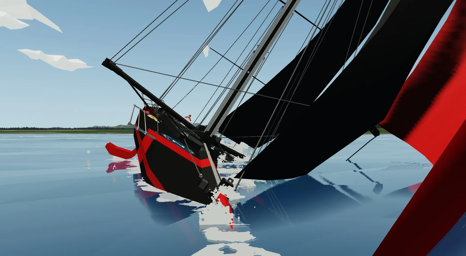 [*] Adjust boom angle and Jib position until both sails catch wind.