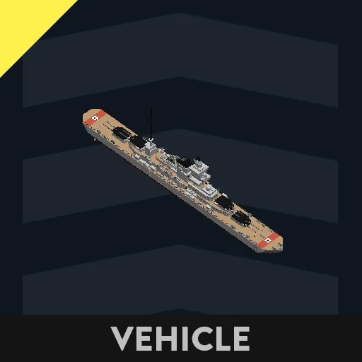 This Is the K.M.S BLUCHER {This may be historically inaccurate} The Blucher was a Kriegsmarine Heavy Cruiser that sailed during 1939-1940 it sunk during the invasion of Denmark And Norway as heavy shells and torpedoes from Drobak Bunkers hit it. [tags: Battleship] Instructions: Lights: go to the bridge and there should be 2 Floor Doors, go in the one that is called, LIGHTS there should be a room with keys. GUNS: Go to the room under the bridge there should be 1 driver seat go in it and press 1 twice and then click space to fire.