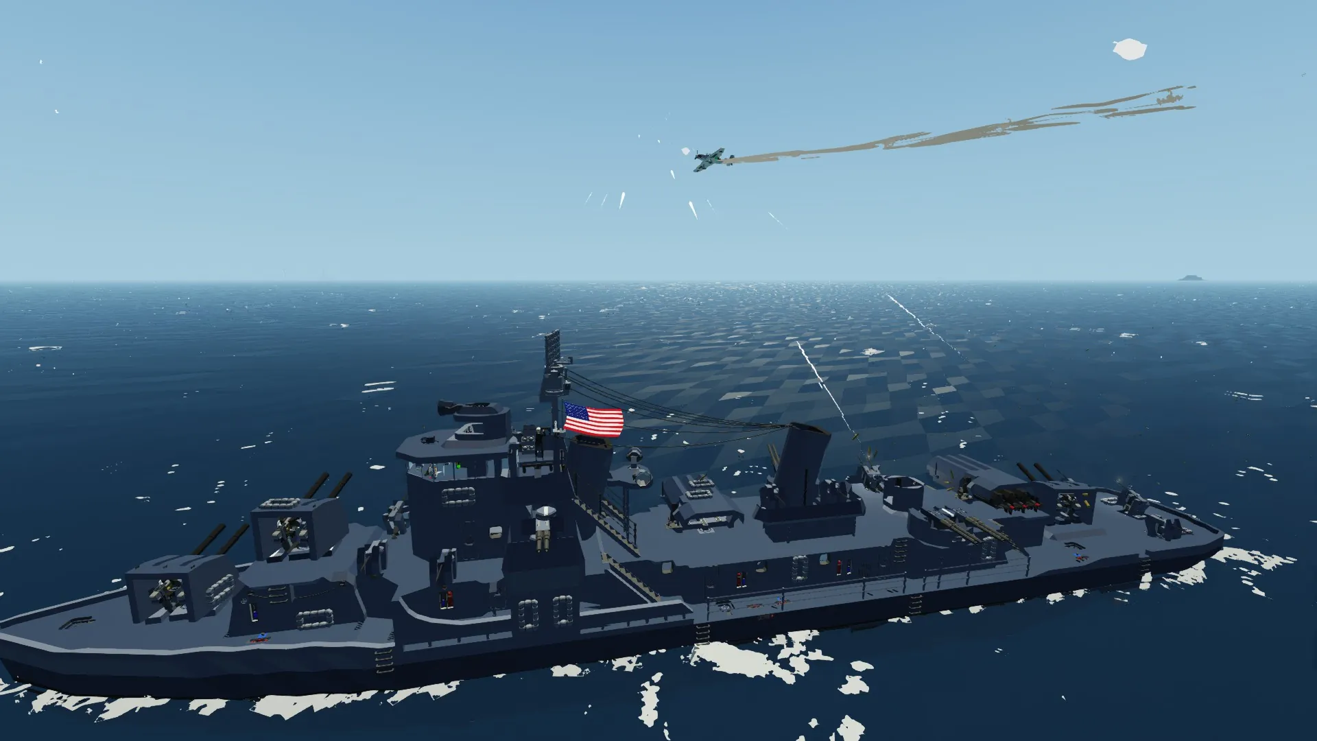 -The Anti Aircraft stations are on the bridge wings, and control all guns on their side of the ship. They have radar compensation for range, (hotkey 1), a Narrow mode (AA guns converge at roughly 600 meters). With radar range mode on, and an active radar target, the light guns will not fire unless the target is inside 600 meters. The main guns can also be linked and controlled from the AA Directors using hotkeys 3. Hotkey 4 will use radar for elevation, which is primarily useful against surface targets. By default all guns are enabled, but can be disabled individually by a toggle button near each mount.