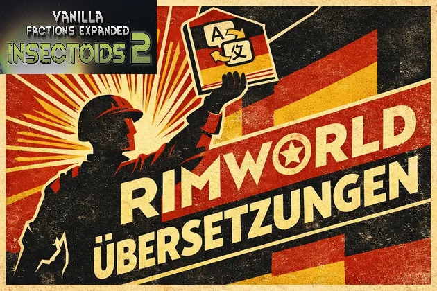 German translation for Vanilla Factions Expanded - Insectoids 2. All creature names, descriptions, research projects, building labels, ability descriptions, scenario text, storyteller descriptions, tooltips and UI strings are translated — nothing in the original mod is changed.
