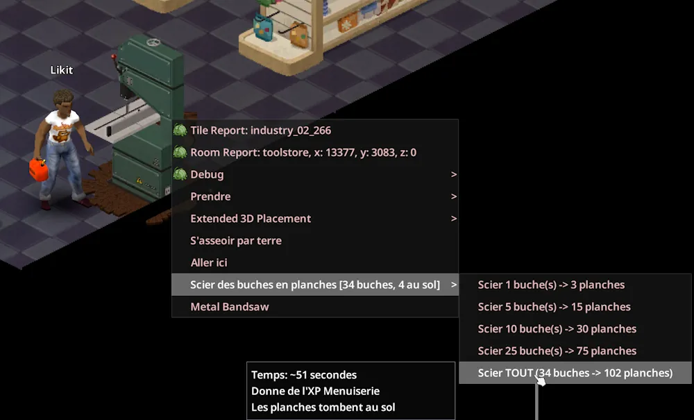 • Right-click on the bandsaw or on logs in your inventory