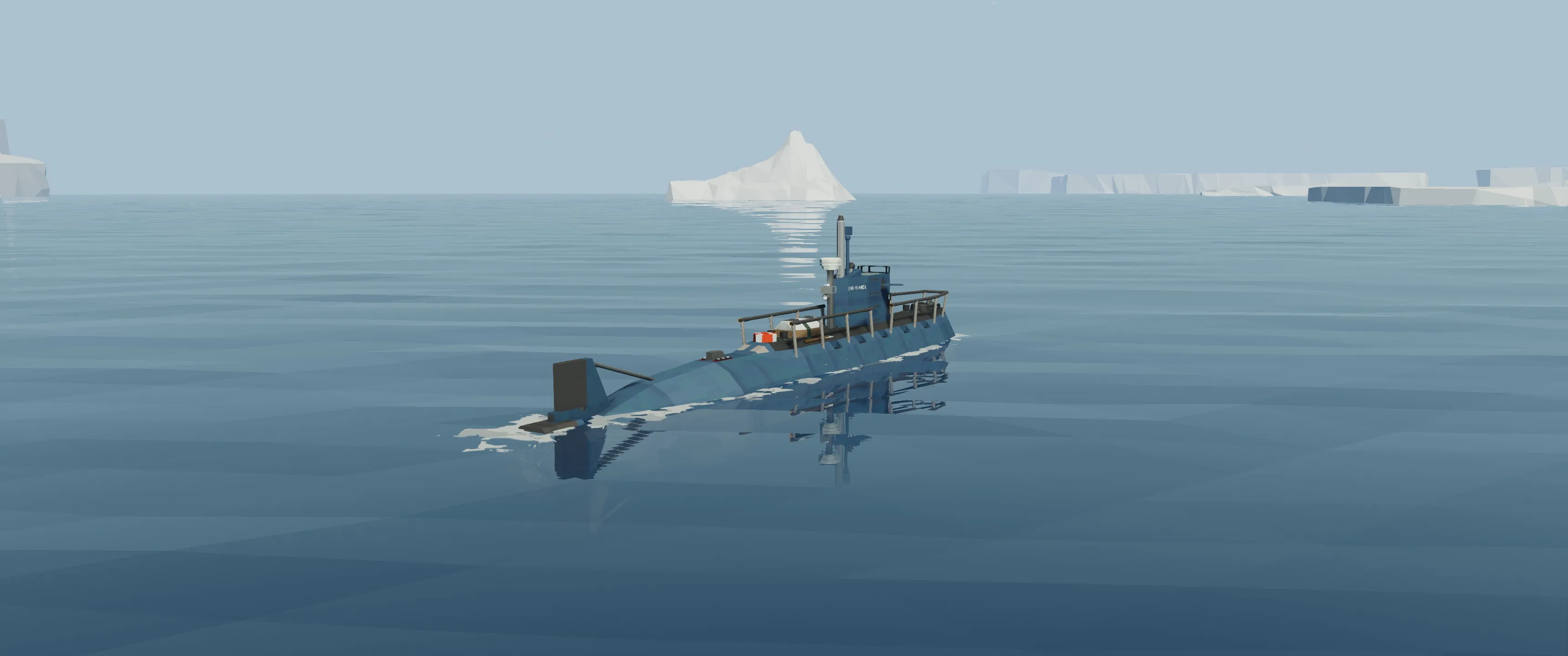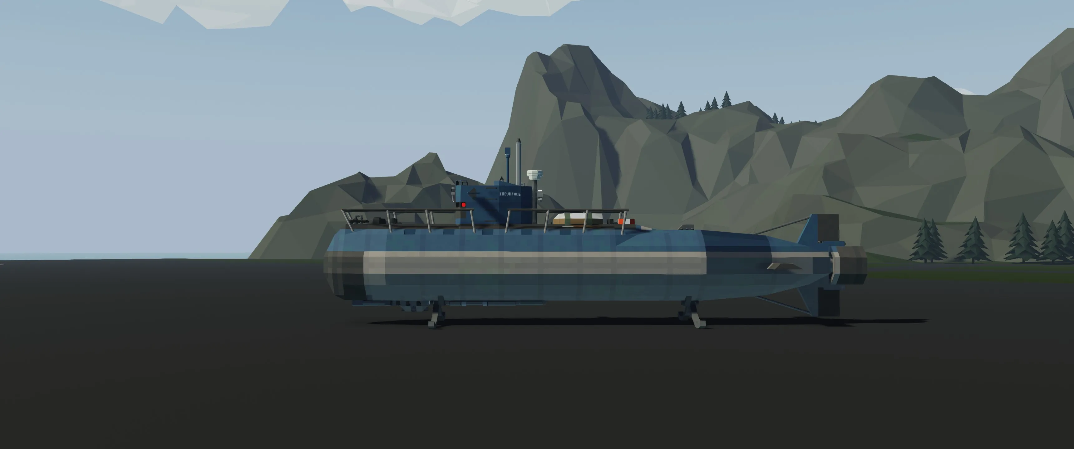 The Endurance, named after Shackleton's polar explorer, is a decommissioned military submarine that's been retro-fitted for science and exploration. Some examples are how the torpedo tube has been transformed into an airlock for divers, and a small observation bubble fixed to the bottom of the vessel. The Endurance also has a small dinghy on the deck (non-functional) for access to beaches and shallower water. The vessel can accommodate up to three crew members with a small galley, head, and bunk room. The periscope, snorkel, and radar have been permanently fixed in the up position as it has no need for stealth anymore.