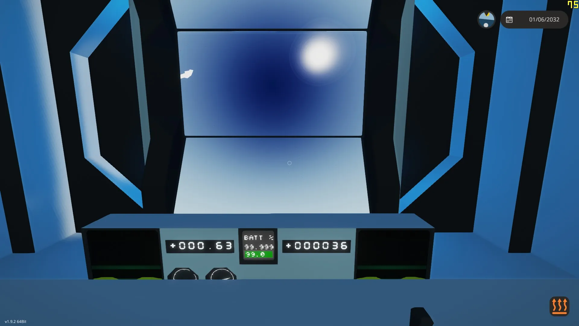 go up ladder enter air lock then main cabin, sit in the 3rd seat from the left and press (avionics) then (launch) then the controls r wsad.