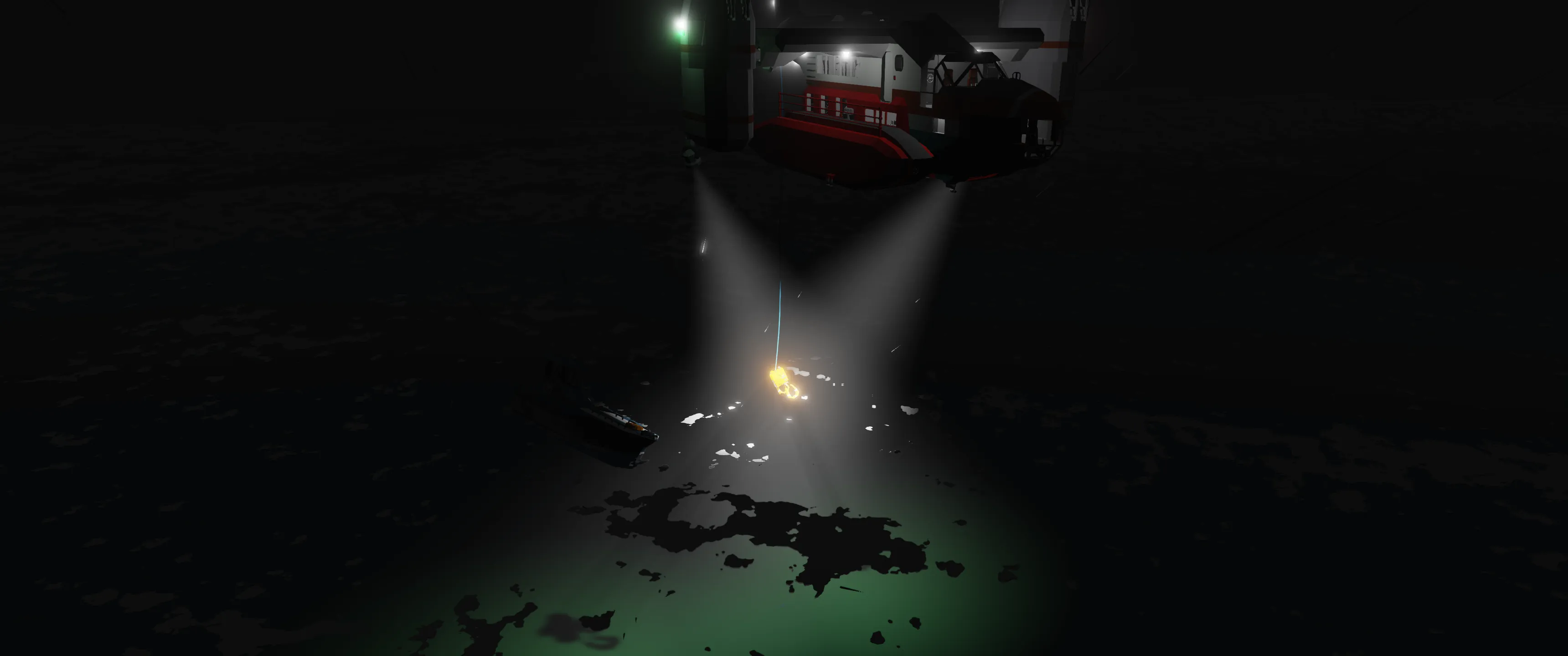 The lifting winch can be controlled within the cockpit. And spotlights can follow its endpoint aswell but not as accurately. No dedicated sensors on the winch unlike harness so estimated location.